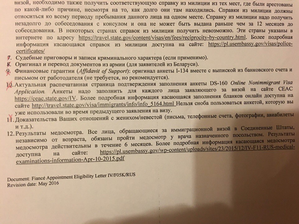 Green Day писал(а): девочки мой мч писал в обращался в посольство с вопросом какие фин доки от него требуются, в общем ничего нового они не написали "You must submit proof that your fiancée will not become a public charge in the U.S. This proof can be submitted in different forms. Many applicants present a notarized I-134 Affidavit of Support. This form and instructions are available from http://www.uscis.gov/i-134. Do not submit the I-864 Affidavit of Support form. This form is used only in immigrant visa cases. We typically do not accept I-134 or I-864 from joint sponsors for K visas. The petitioners should forward their most recent tax return (and W-2’s). If the petitioner has not filed taxes, the petitioner can provide a letter from his employer confirming an annual salary, copies of recent bank statements or proof of other assets." смутило меня только вот это notarized I-134 Affidavit of Support  чё? подписи уже мало? хм, странно... а кто-нибудь заверял эту форму нотариально? мне пришло письмо из посольства и там вообще вот такой список фин доков указан (пункт 9)