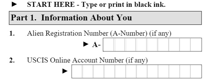 Alien Registration Number (A-Number) (if any) -то есть если нет такого то писать вместо цифр N/A