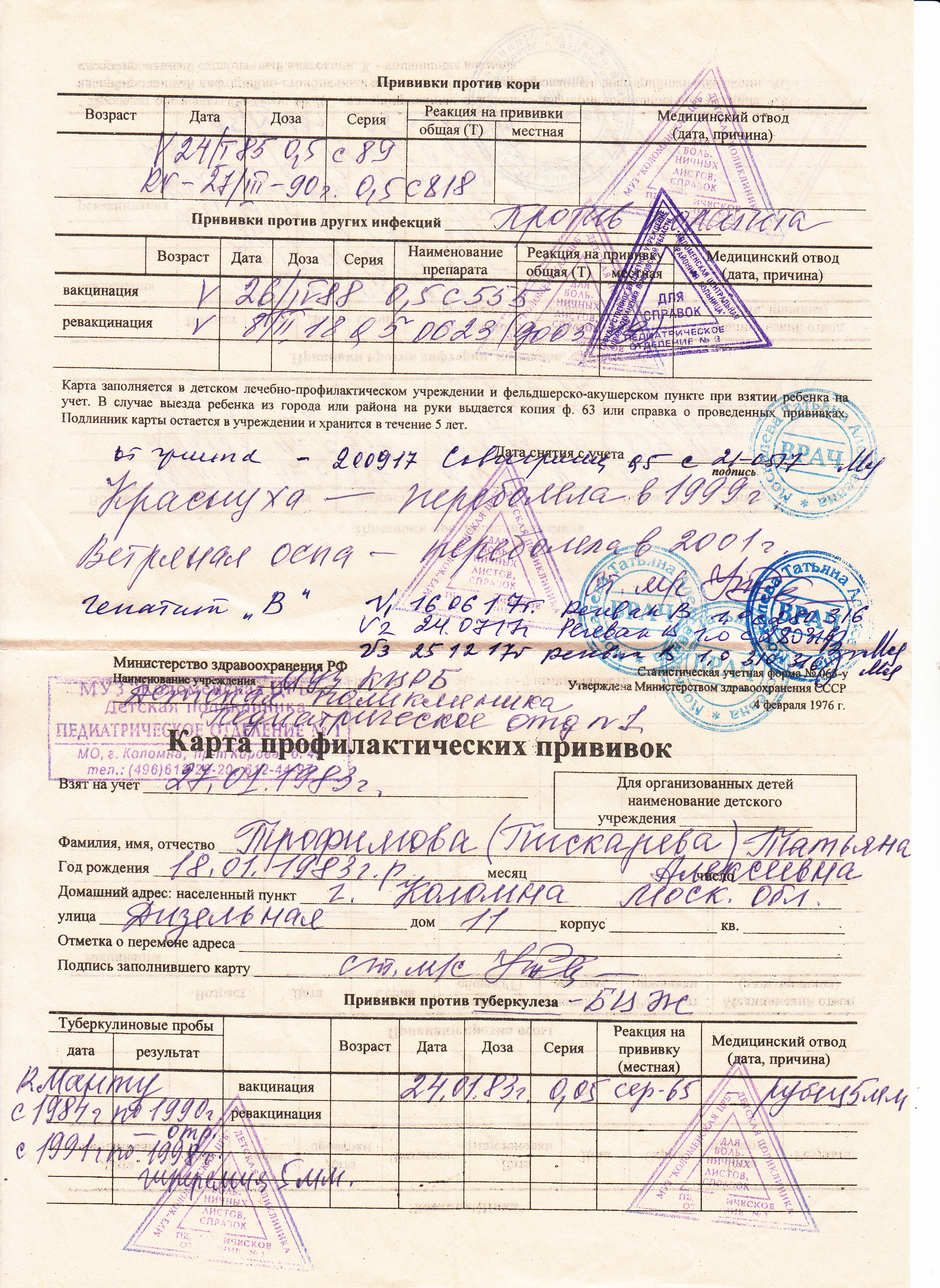Bounina писал(а): добрый день, посмотрите пожалуйста мою карту, выдали дубликат в поликлинике АДСМ и краснуху