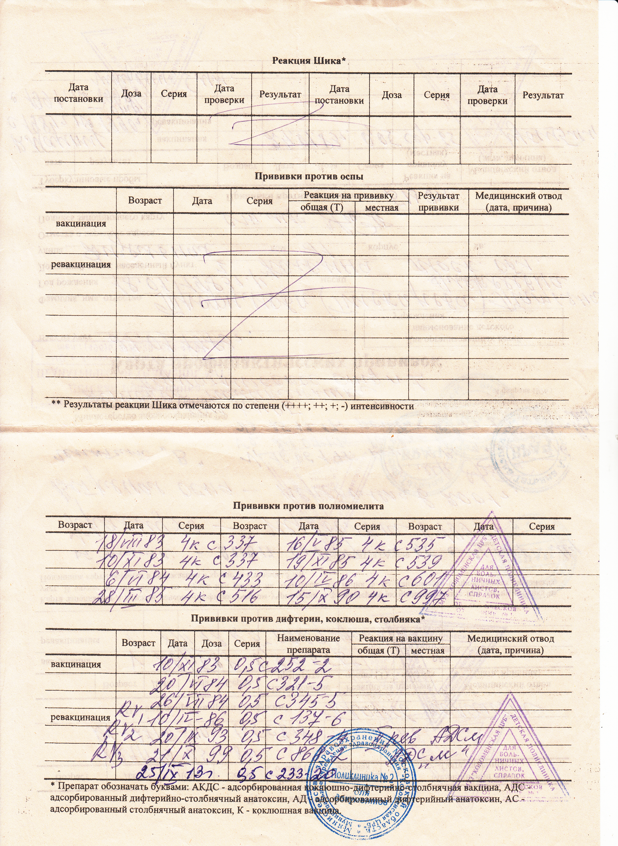 instructor писал(а): Bounina писал(а): добрый день, посмотрите пожалуйста мою карту, выдали дубликат в поликлинике АДСМ и краснуху добрый день, спасибо за ответ, то есть это надо взять эту катрочку и с ней в поликлинику, там участкового врача спросить сделают ли мне эти прививки? верно я понимаю? в США прививки дорогие, время есть сделать их тут