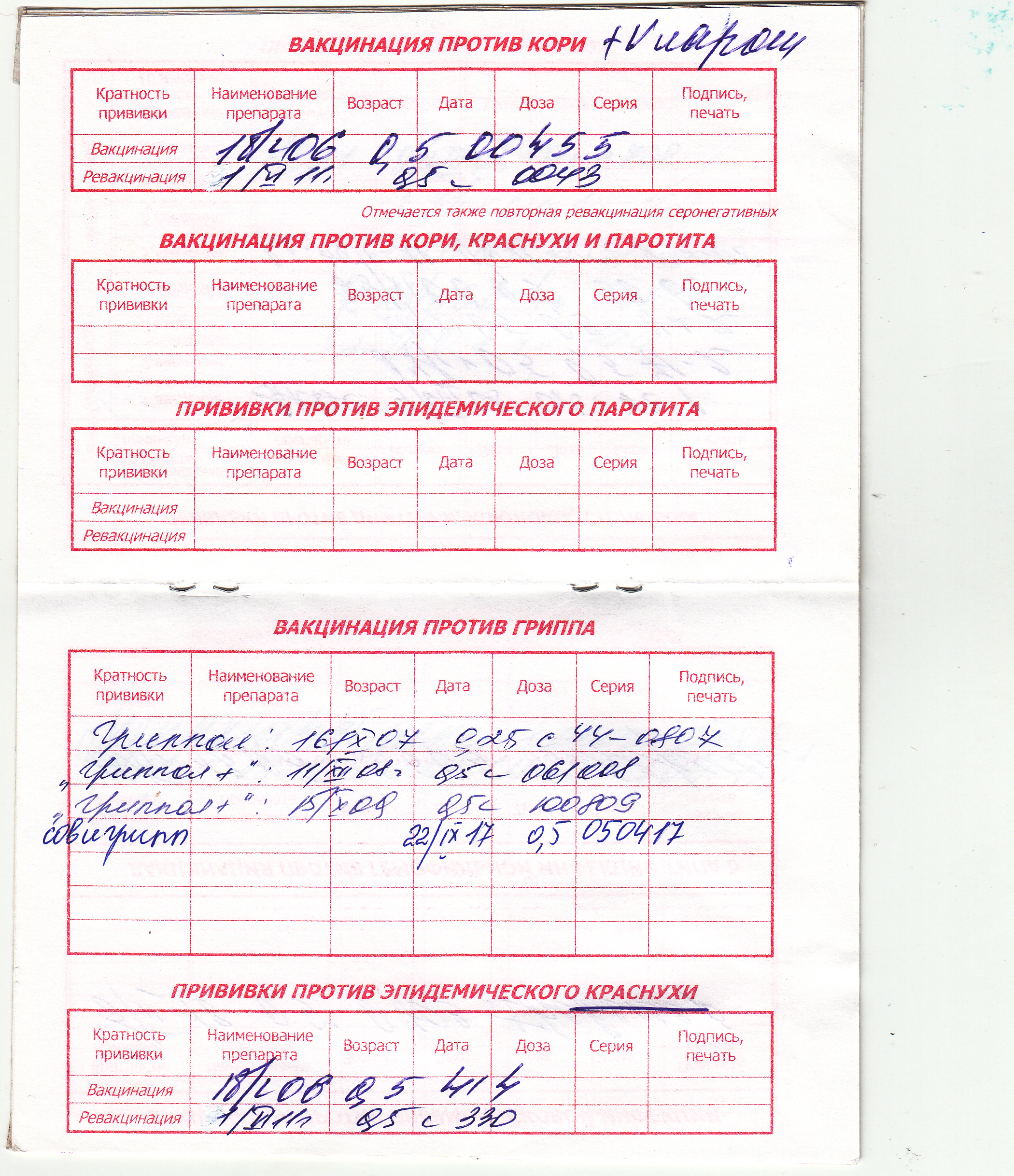 instructor писал(а): Bounina писал(а): добрый день, посмотрите пожалуйста мою карту, выдали дубликат в поликлинике АДСМ и краснуху добрый день, спасибо за ответ, позвонила в прививочный центр, сказали краснуху после 30 лет не ставят, мне 35, подтвердите ли вы эту информацию?
