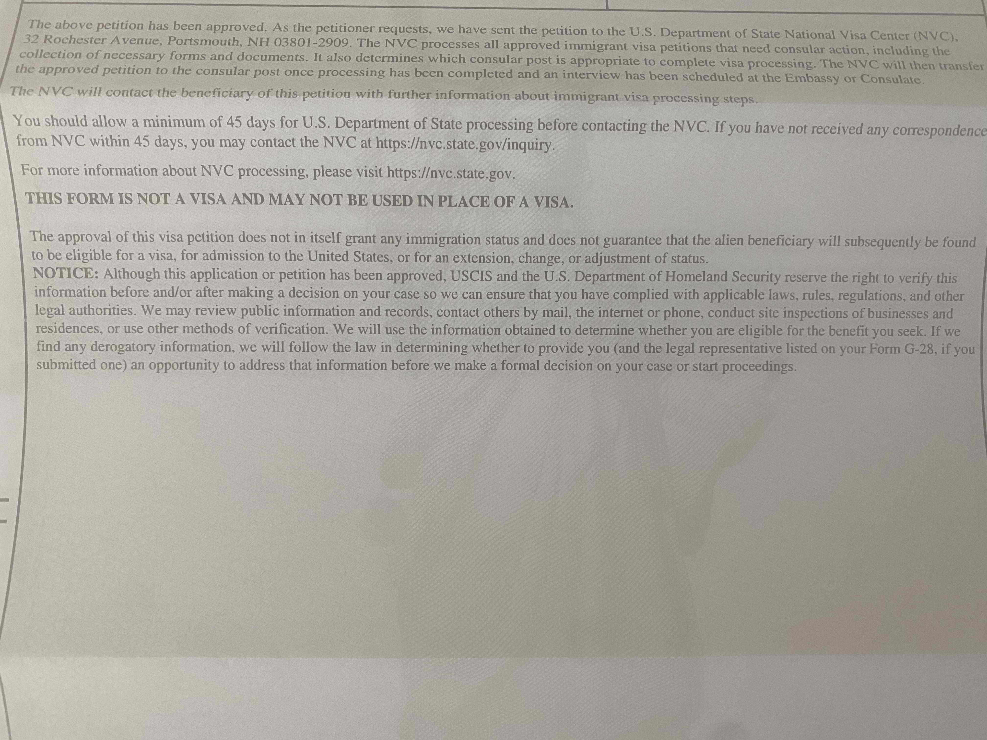 Ell, вам теперь ждать инструкций от НВЦ надо, они потребуют с вас Афидавит и может ещё какие-то бумажки. Удачи!!! И терпения.