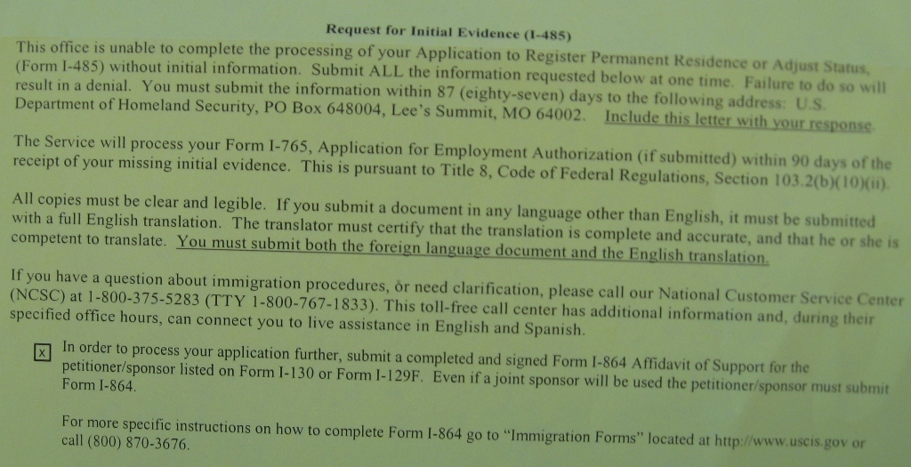 Erie писал(а): Аффидавит от саппорт хотят от вас. А почему ваш муж не смог подать документы на вашего ребенка? Вы поженились когда ребенку было больше 18-ти лет? А что такое саппорт? Да, мы поженились когда ребенку было 18 и муж не файлил 130, а я когда получила гринку свою в сша файлила на ребенка 130 плюс на смену статуса. Сегодня от юскиса получили вот это письмо и я не могу понять, что они хотят. Мы с мужем звонили им сегодня и нам сказали, что я должна файлить I-864, даже если у меня инкам зеро, а муж мой должен файлить I-864А. Я смотрела I-864А инструкцию и это контракт между мужем и мной (так получается). а кто тогда должен быть ко спонсором и зачем этот контракт нам нужен? Может я что-то не поняла? я не хочу новый RFE.