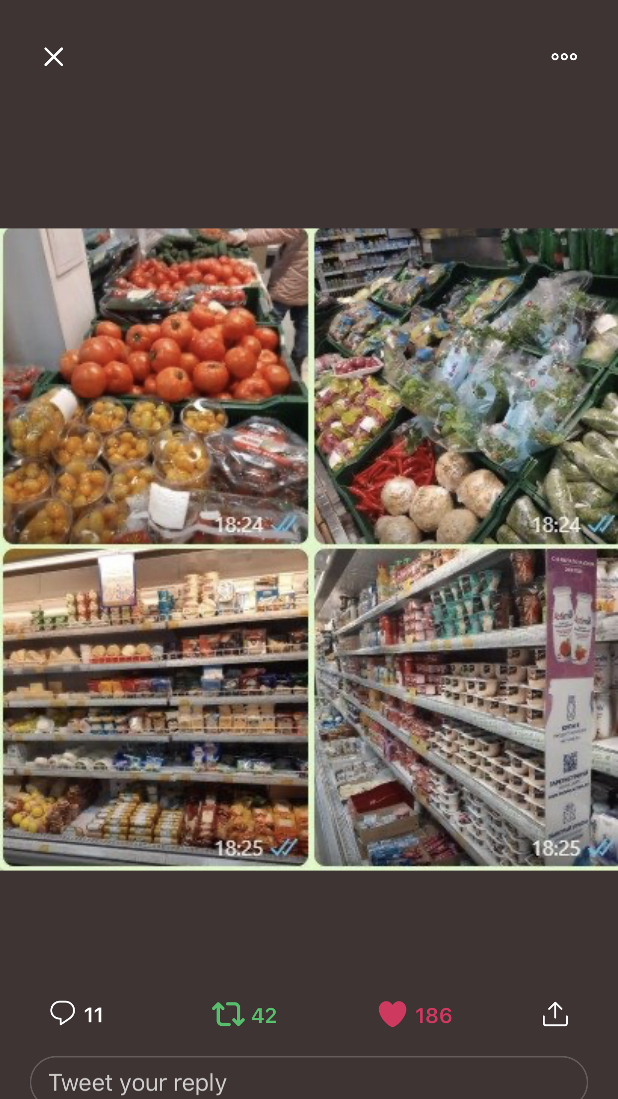 marina писал(а): Я с подругой сегодня утром говорила. Она в Питере. Говорит муж вчера ходил за продуктами, большинство всего раскуплено и прислала фото пустых полок Я тебе показала полки- постят в Твитере и видео тоже