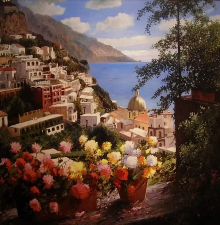 Золотая голубятня у воды, Ласковой и млеюще-зеленой; Заметает ветерок соленый Черных лодок узкие следы.