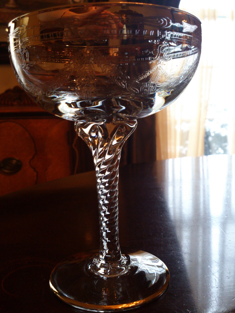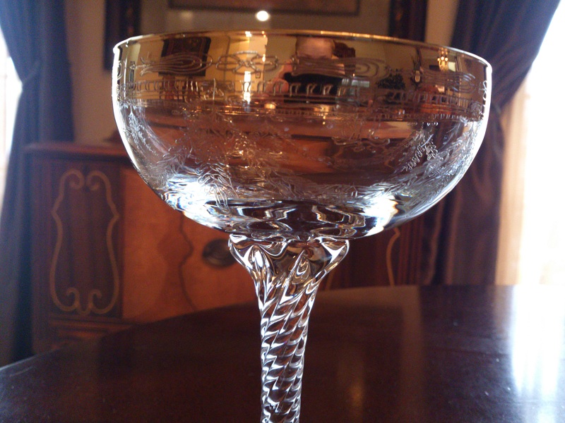 Я саавсем не спецъялист , но так похоже на богемское стекло .  Я давно тоже хотела купить фужеры , но все никак , уж очень боязно потом разбить . Что мне нравится - так это тонкая гравировка как иголочкой рисунок нанесен , прям как иней . Они и формы разной бывают , и отделка или золотистая или серебристая . Если что , простите мое невежество .