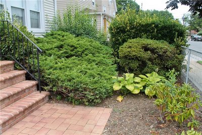 Кусты около фронта дома, входа. Слева от дома драйввей, он широк, слева кусты, потом площадка под встречу гостей, на заднем плане 4 гаража, справа за углом задний дворик, где один столик, и кусты минта, что на последней фотке. Строго не судить, если честно, мне нравится, что ухаживать не надо, зелено, не перфект, конечно, но оно само все растет. -)))