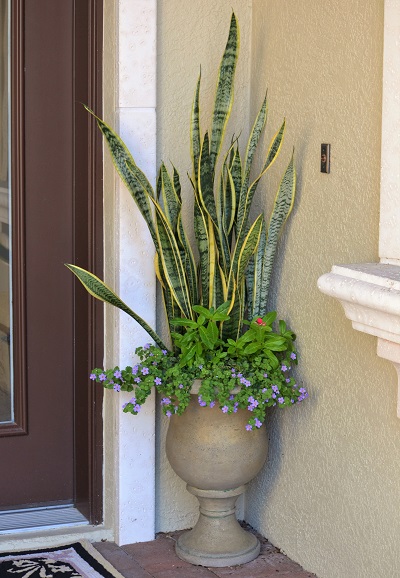Вазоны у входной двери обновила