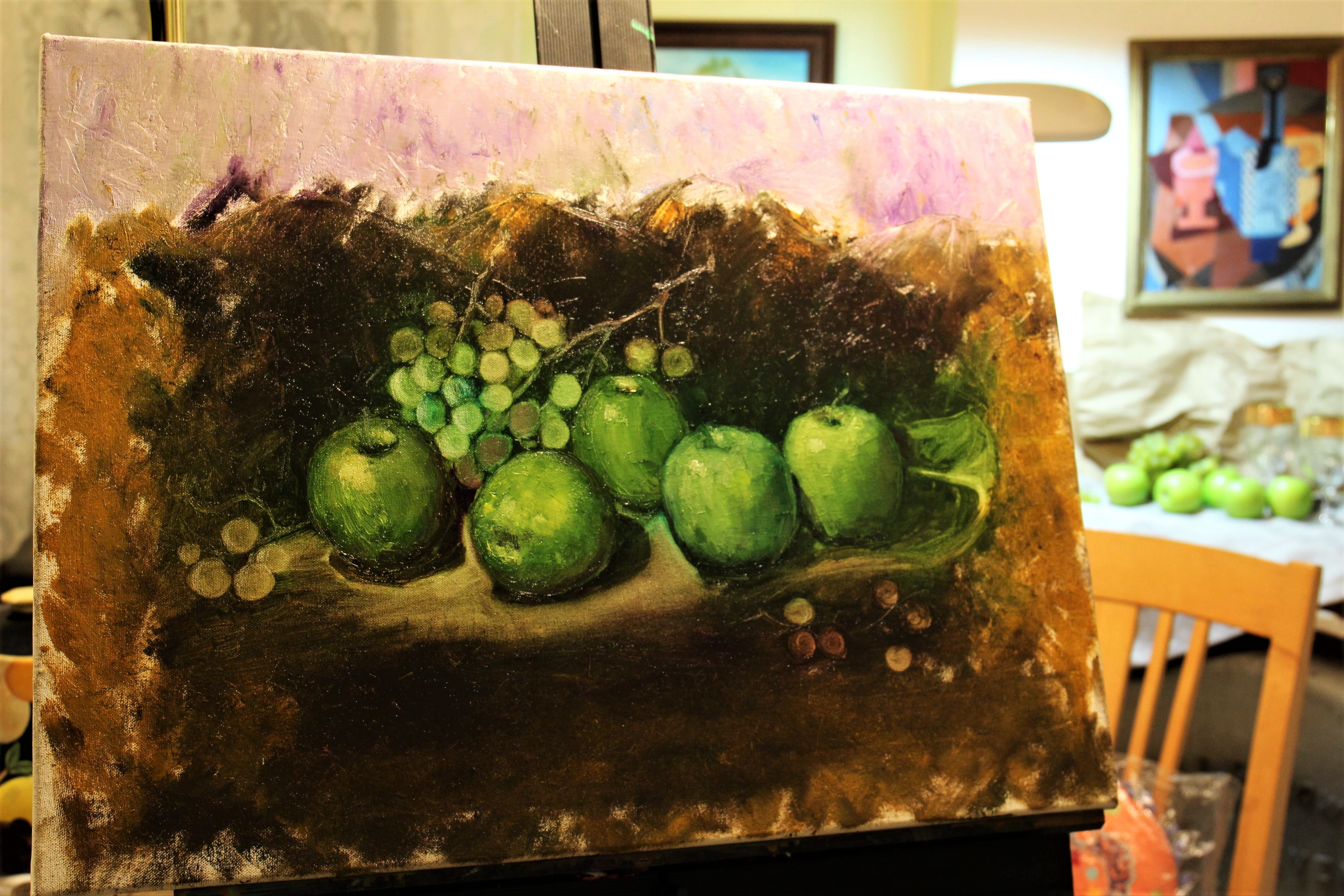 1. Вопрос номер один. Та картина, на которой пишутся яблоки, была покрыта лаком перед ними?