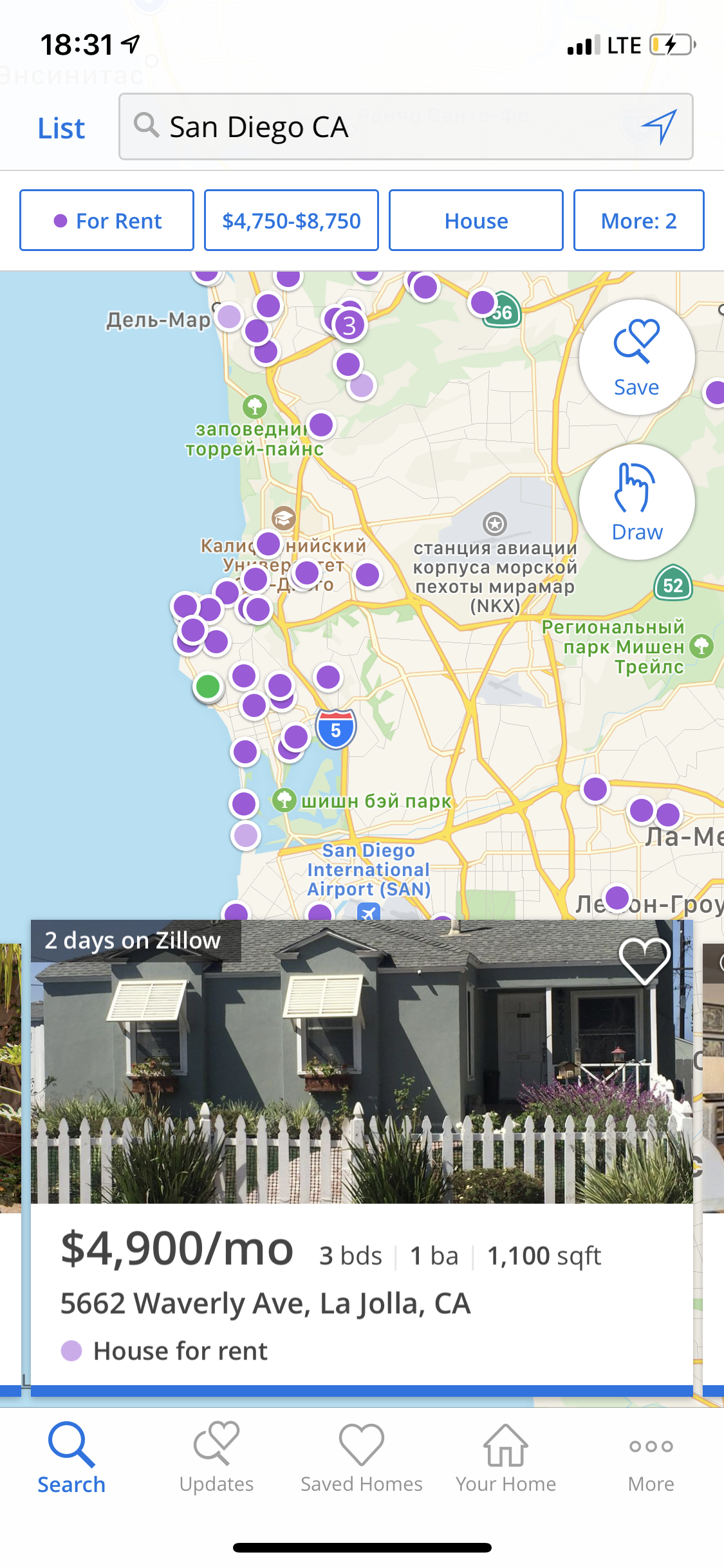 Марибел, вот пример дома который можно снять в сан диего в хорошем районе за 4900$ лахоя район . Суперский. Видишь какой крохотный дом ? 5 касарей, хочешь побольше готовь 8000$+ в месяц . Такие же цены в сан фране. На какую пенсию можно тут жить? Кем это можно работать что б пенсия была хотя бы 10 к в месяц ?