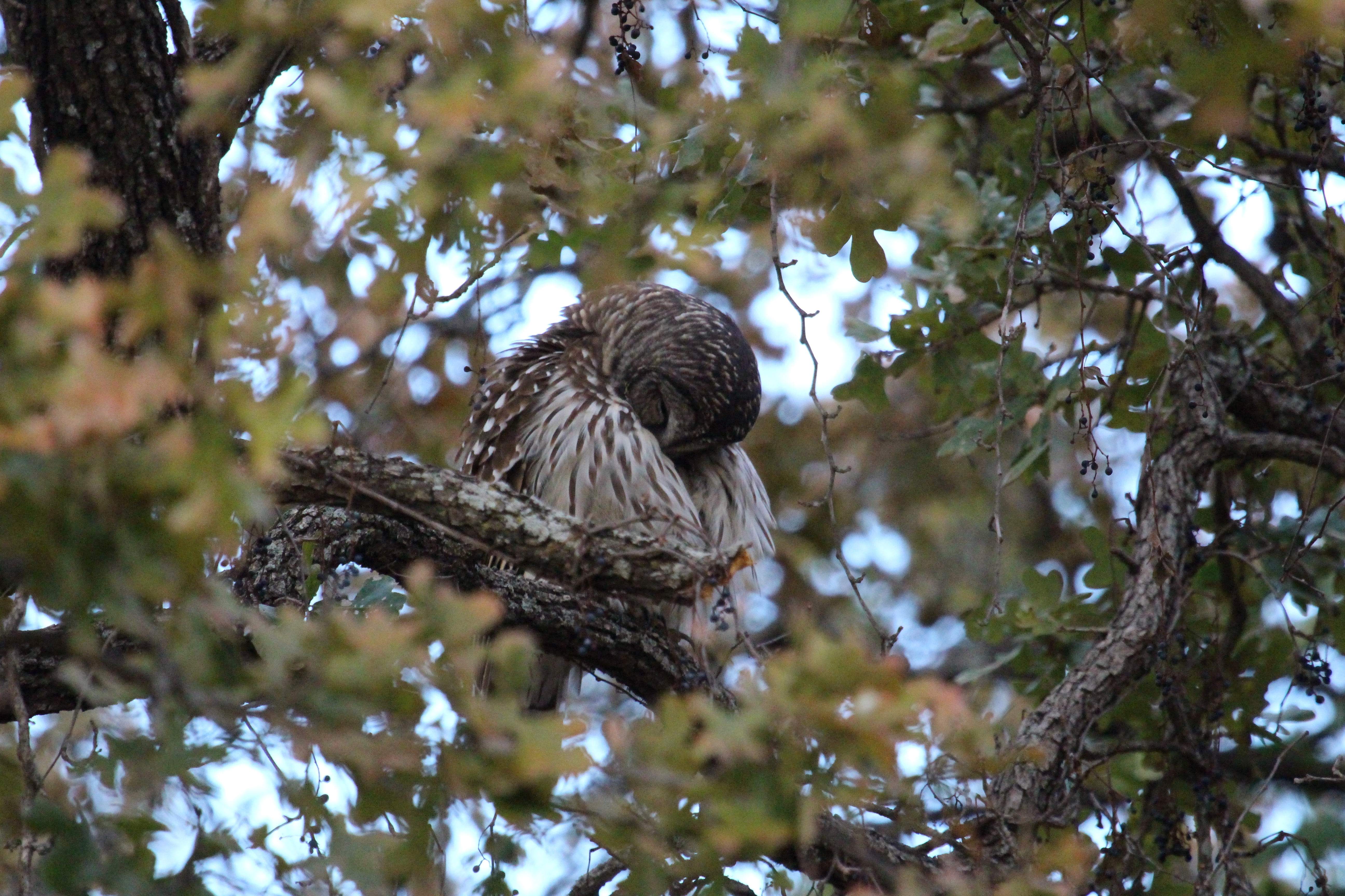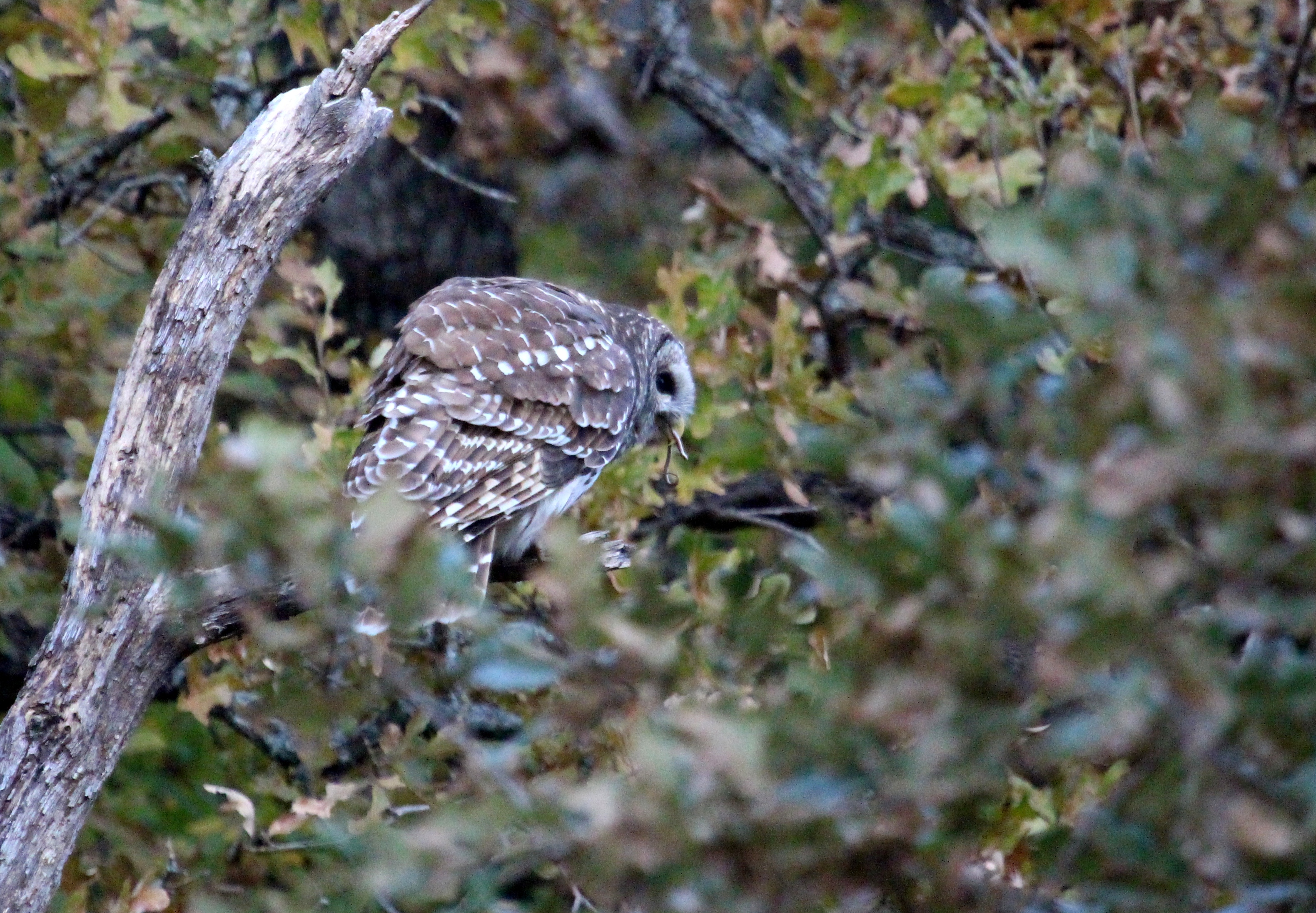еще вот посетительница нарисовалась  Никогда бы не заметила, если бы она не полетела. Спокойно так полетела - оказалось, охотиться. Посидела, подоздала, пока я метнусь за камерой. Спустилась, поднялась, зажевала змейку. Спиной, правда, сидела, к сожалению, ну хоть ладно не среди веток.