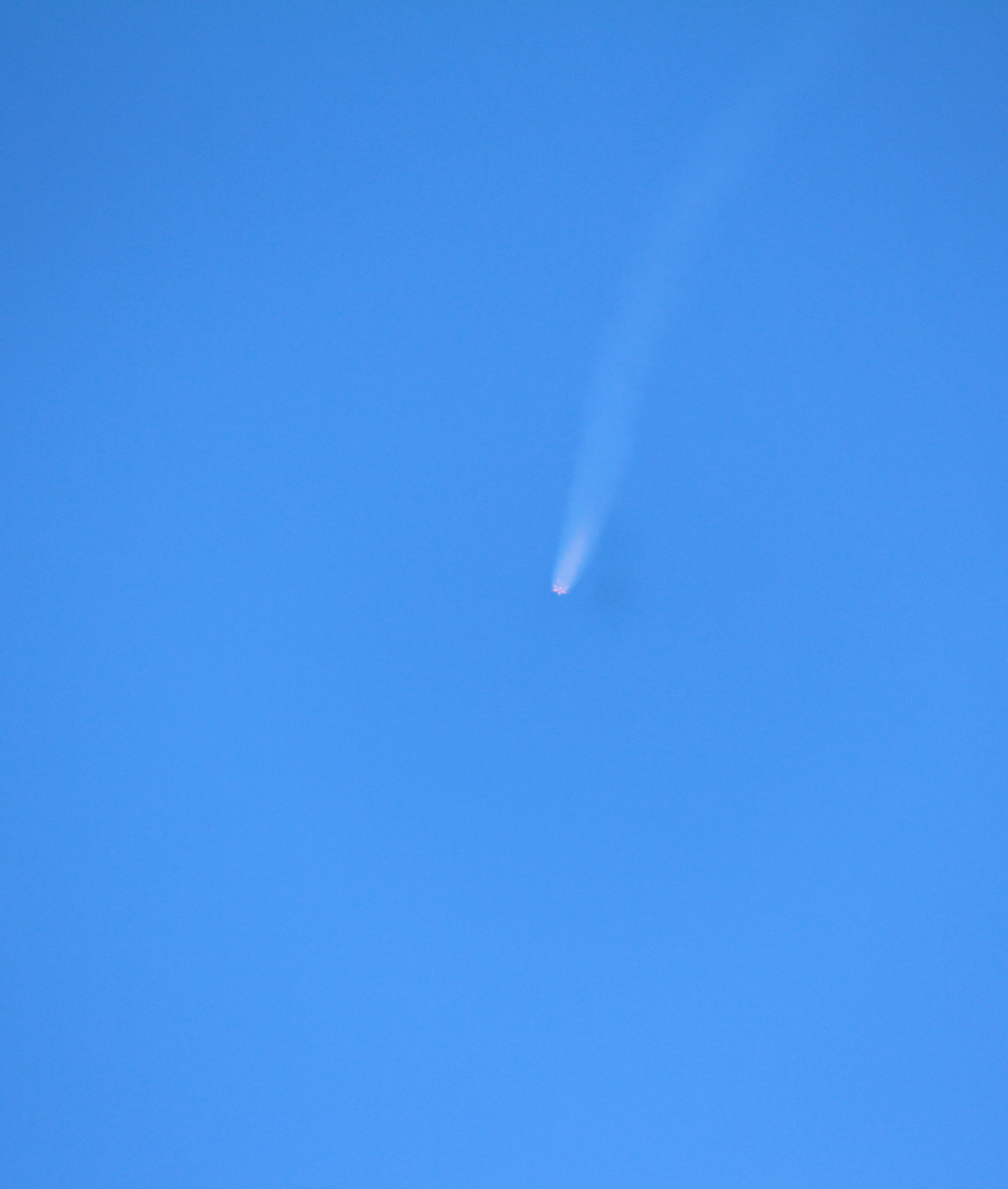 фалькон9 с люксембургским спутником связи на борту. видно как отделяется первая ступень и возвращается на землю. Красиво, ярко, но слишком быстро :c_laugh