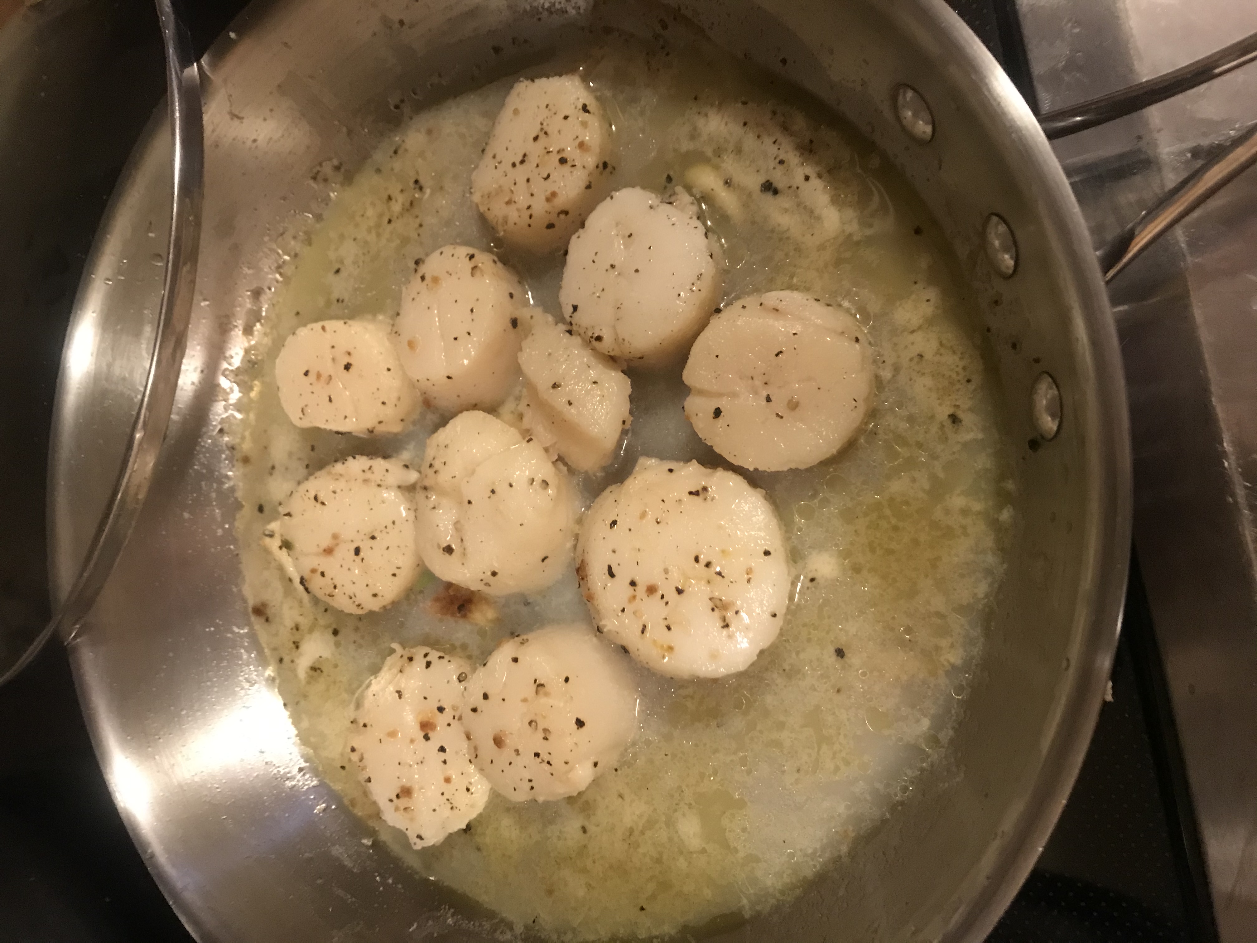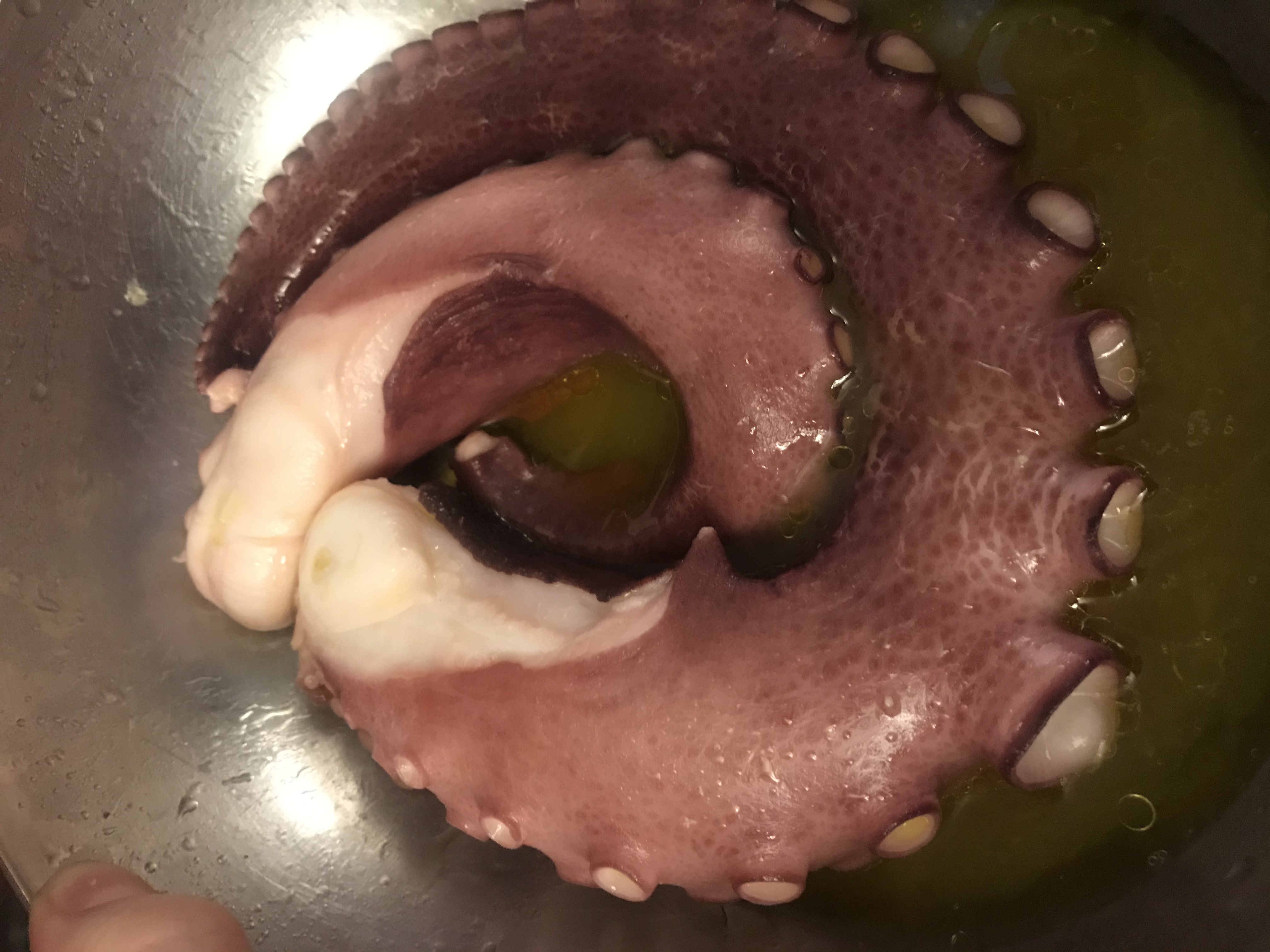 Удовольствия для всех возрастов рыба! Впервые приготовила скалопсы сама, до сего дня мне их готовил муж.Сегодня он только рядом стоял и следил за мной  . Главное, не передержать. Получилось хорошо. Чилийский сибас - неплохая рыба, но до черноморской камбалы не дотягивает. Эх! Стейки салмона готовы, сняла с соли сегодня. Ну и замариновала щупальцы в лимонном соке и оливковом масле +соль. Завтра муж заргилит это дело. Дома не делали, завтра попробуем че получится.