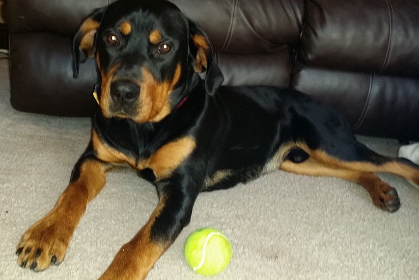 Даже неудобно как-то, но все ж похвастаюсь. Мы уже два дня как гордые владельцы и опять ротвейлера. Из шелтора взяли, очень случайно, мы уже нашли щенка у бридеров почти по соседству, а тут на фейсбуке выплыла реклама и друзья на нее указали, ему 9 мес., подросток скорее, не совсем щенок. И с документами, хоть нам и без разницы. 60 аппликантов было за день, отдали нам. Лапищи здоровеннные, весь такой неуклюжий, веселый и дружелюбный. Вот он: