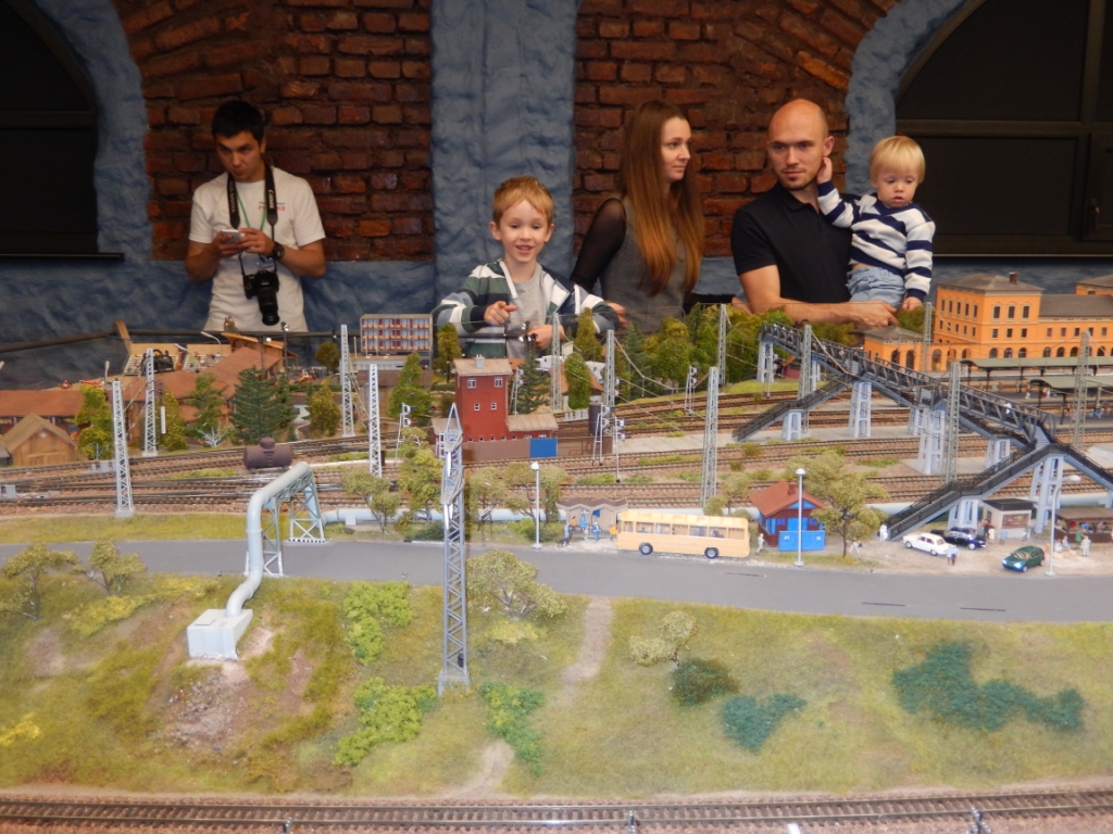 Еще побывали на выставке "Гранд макет Россия". Никогда ничего подобного не видела! Вся Россия в миниатюре.Абсолютно уникальный проэкт. Там все двигается. Сделано сюморком. Даже Путин по тайге оседлав медведя несется!  Очень было много детей, особенно пап с детьми. И папы такие классные, в мое время, к сожалению , таких не было.Вообще в Питере столько много хороших молодых семей.приятно посмотреть,.
