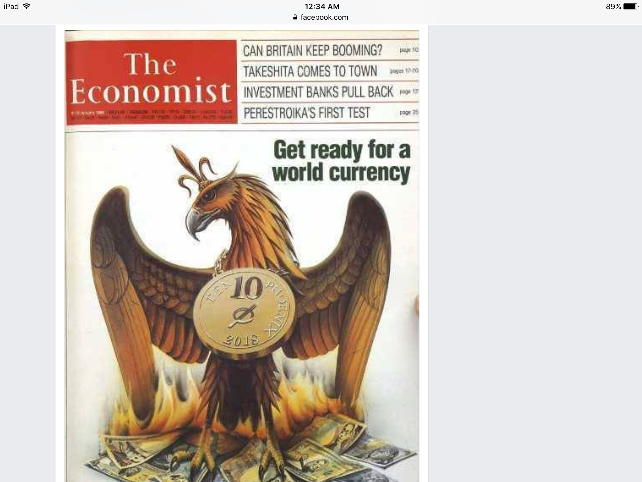 The New World Orders plans for 2018, revealed in 1988 Economist Magazine! Notice the medallion about the rising Phoenix neck......cashless system just around the corner? You can't serve both sides! YOU HAVE BEEN WARNED Evidence points to Bitcoin being an NSA-engineered psyop to roll out one-world digital currency: