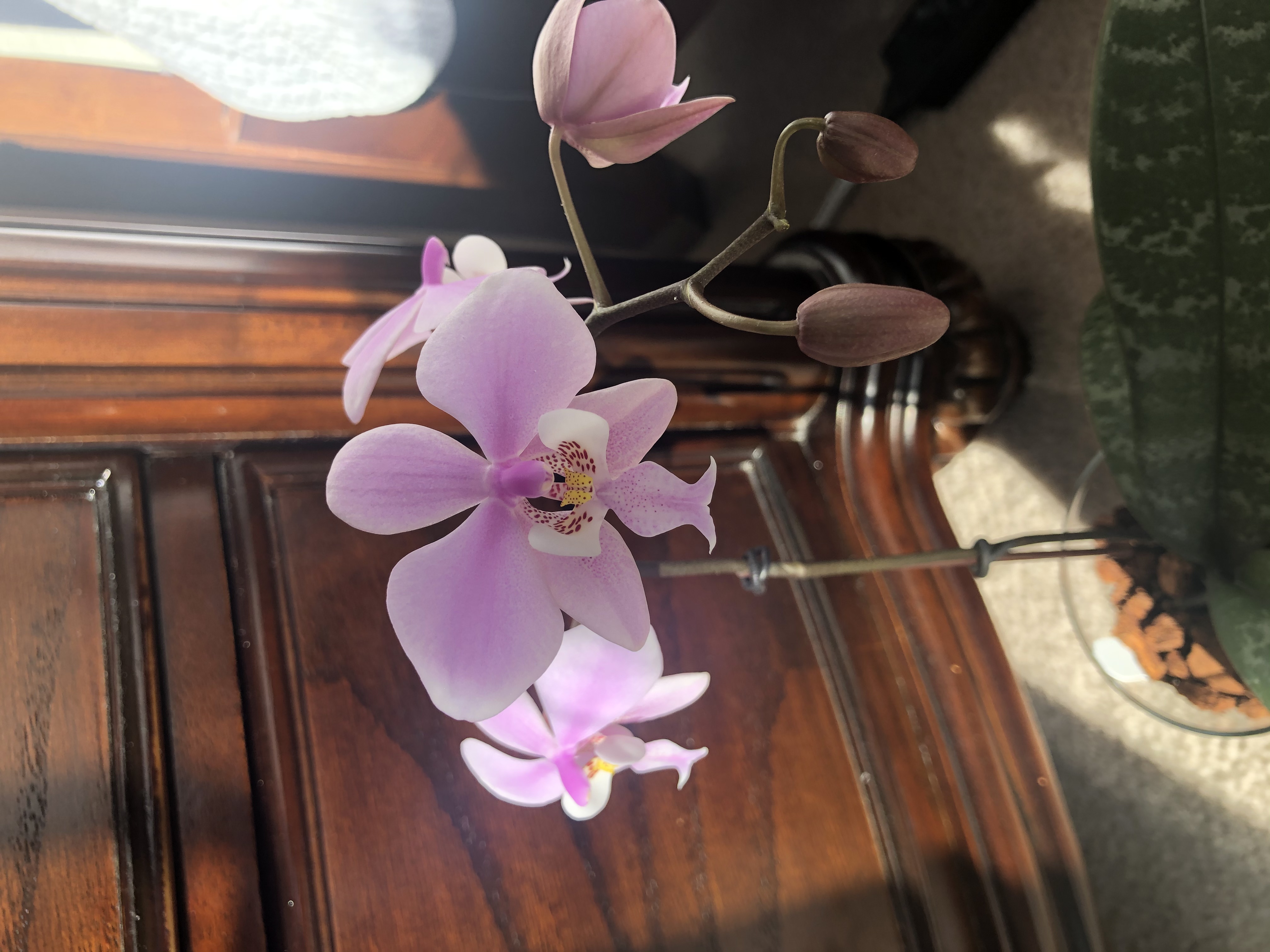 Три, Карл, три!!! орхи вчера купила.  (таблетку от жадности забыла принять перед шопингом) Желтую губошлепку в ТД (Бейли  , первая желтенькая у меня появилась), именную в Лоусе, цветы еще в бутонах, дешево, соблазнилась на цену и наличие имени (Wang Lin Rose). И под конец в ХД увидела 5” темно-бордовую с очень темной (почти черной) губой, в плохом состоянии, помятые листья, поникшие цветы, но не уцененную  Сердце мое переполнилось жалостью и не смогла ее бросить погибать. Ну вот что делать с болезнью, чем лечитья?