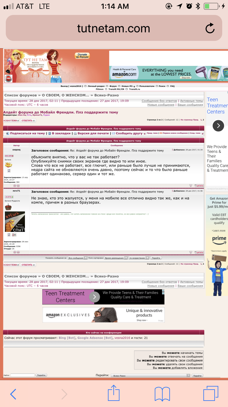 Скриншоты моего экрана с телефона. На первом фото увеличенный вид чтобы прочитать, на втором обычный вид. У меня тоже айфон, настройки никакие не меняла, другие сайты показывает хорошо а вот с форумом у меня проблема.