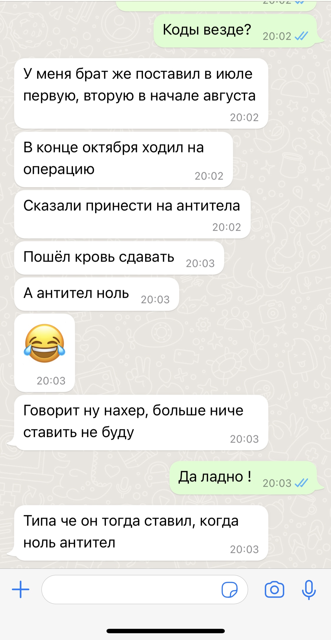Я понимаю, что 80 лет , это уже возраст, но если бы не этот ковид, она еще б прожила может 10 и больше лет. Двое сыновей, пятеро внуков и трое правнуков...И муж, который просто не в себе от горя. Мне его больше всех жалко, он просто никакой от горя, по словам сестры. Я даже боюсь ему по звонить я не знаю, что и как сказать. Заебись ваши прививочки. Привитый заразил бабушку и скажите ему спасибо !!! Привитые это ходячая химико биохимическая лаборатория . Они и есть разносчики дряни. Эпидемия критинизма продолжается . Запритесь уже все вакцинированные дома , спите в масках . Не ходите и не заражайте людей своими бациллами . Бабушка прожила достойную жизнь ! И слава богу не дожила до фашизма ещё раз !! Я понимаю, что это безнадежно, но все же у меня пара вопросов А до того, как ковидная прививка появилась, кто был разносчиком дряни? Привитый дедушка перенес ковид, выжил. Как мы это прокомментируем?