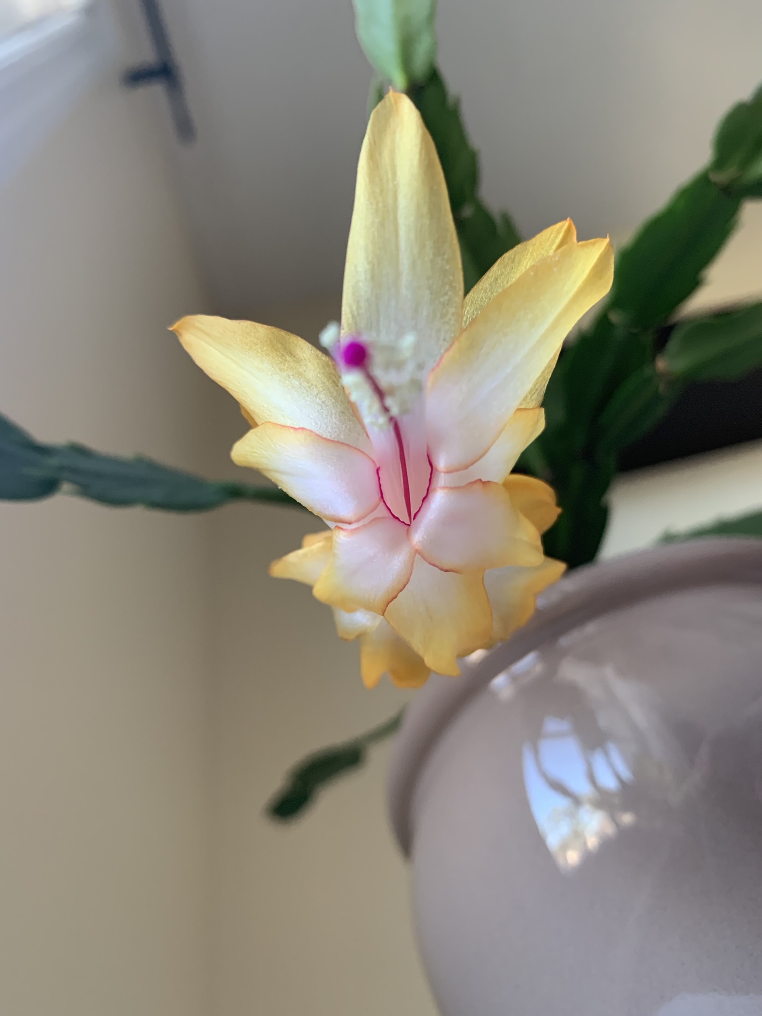 Lyuna писал(а): monaliza писал(а): Lyuna, Какие цвета шикарные!  Который на переднем у меня похожий но все равно не такой насыщенный. А желтый мой бледнушка, может все эти цвета зависят еще от минералов в почве. Сейчас какие то декабристы гмошные продают не одноцветные на половину с белым. Но во всяком случае мне такие попадались. Спасибо! Да, который на переднем- лавандер цвет. У меня тоже бледнушка есть, тоже какой-то слабый: дает миллион бутонов с прошлого Рождества, а дал только два цветка. Конечно красивый лимонный цвет, но не цветет, все сбрасывает. Поставлю его, глянь если у Вас такой. И для сравнения, ставлю темно- желтый, который Oklaxoma дала с доброго плеча:). Если Ваш цветет, поставьте. Нрава мне очень желтые Я тоже пришла к выводу, что мне больше нравятся насыщенные, яркие цвета, пусть даже и двуцветные. Я вот прошлой весной купила на сэйле ярко красный с заостренными лепестками как у астры. Вот зараза, до сих пор не цветет. Baylee, а у тебя желтый, который инло дала, цветет? Если да, поставь, плиз. Учительница, спасение утопающих, дело самих утопающих. Хотя я думаю, Вы немного драматизируйте с водой))) Мой скорее как на втором фото, хотя там где я брала отростки были такого хорошего желтого цвета, не такого конечно шикарного оранжевого. Еще не распустился, найду с этого года. В Лидл все обычные розовые продавали, и до сих пор есть.