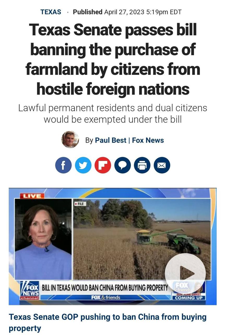 В Техасе запретили покупку земли гражданам из «враждебных стран»