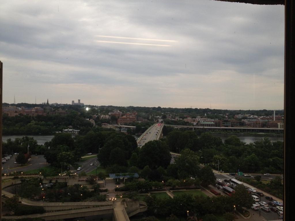 Вид из Вирджинии на ДС - как известно, ДС от Вирджинии на юго-западе отделен рекой Потомак, вот прямо на этом месте мой офисный билдинг, фото из моего кабинета на 12м этаже. Видно Джорджтаунский университет, покоцанные крестики Национального Собора - в прошлом году землетрясением скинуло. К-Бридж через Потомак - по утрам трафик совершенно невообразимый, я бы щелкнула, что там творится, но утром мне работать надо. А вечером я сворачиваю перед этим мостом налево на Джордж Вашингтон Мемориал парквей иииииииииии..... качу домой по этой красивейшей автомобильной дороге в мире - сквозь волшебные кудрявые леса на крутых утесах Потомака, мимо сказочных видов дорогих особняков и ЦРУ до кучи