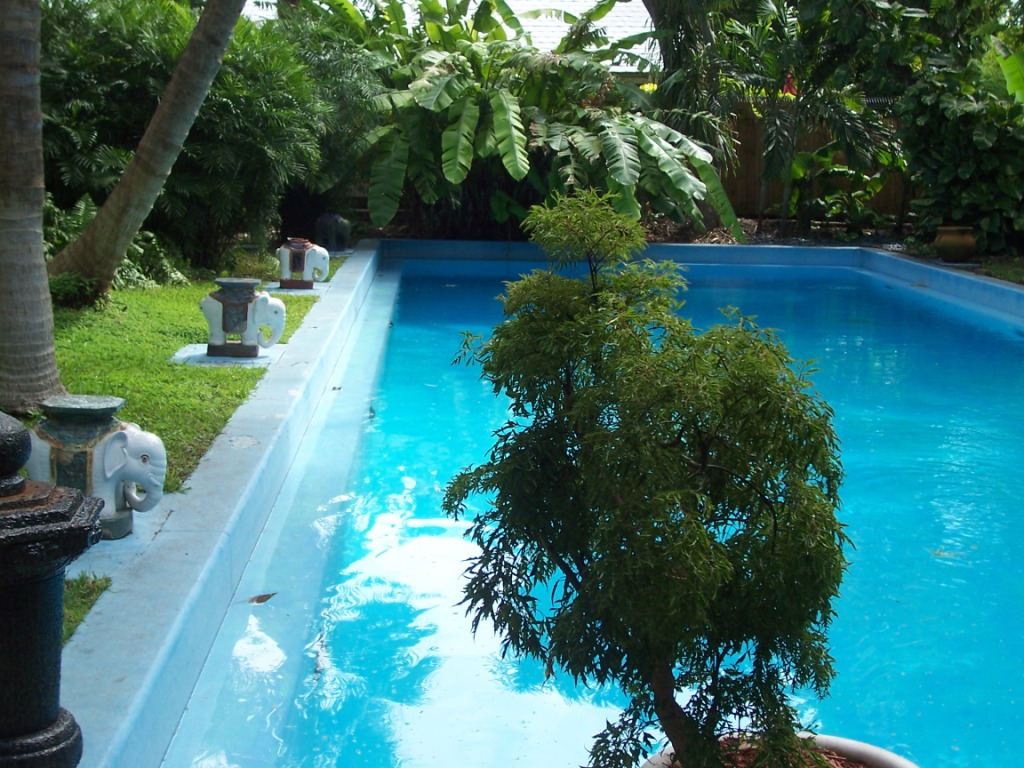 Марианна, на мой взгляд там, где ретэйнинг стены сделали, посадили бы кусты, чего-то эта черная пыль как-то не очень смотрится. А бассейн мне ваш напомнил бассейн из дома Хэменгуэя  .Кстати, там в jungles нельзя чего небудь цветущего подсадить?Как-то красок недостаточно, мне кaжется.