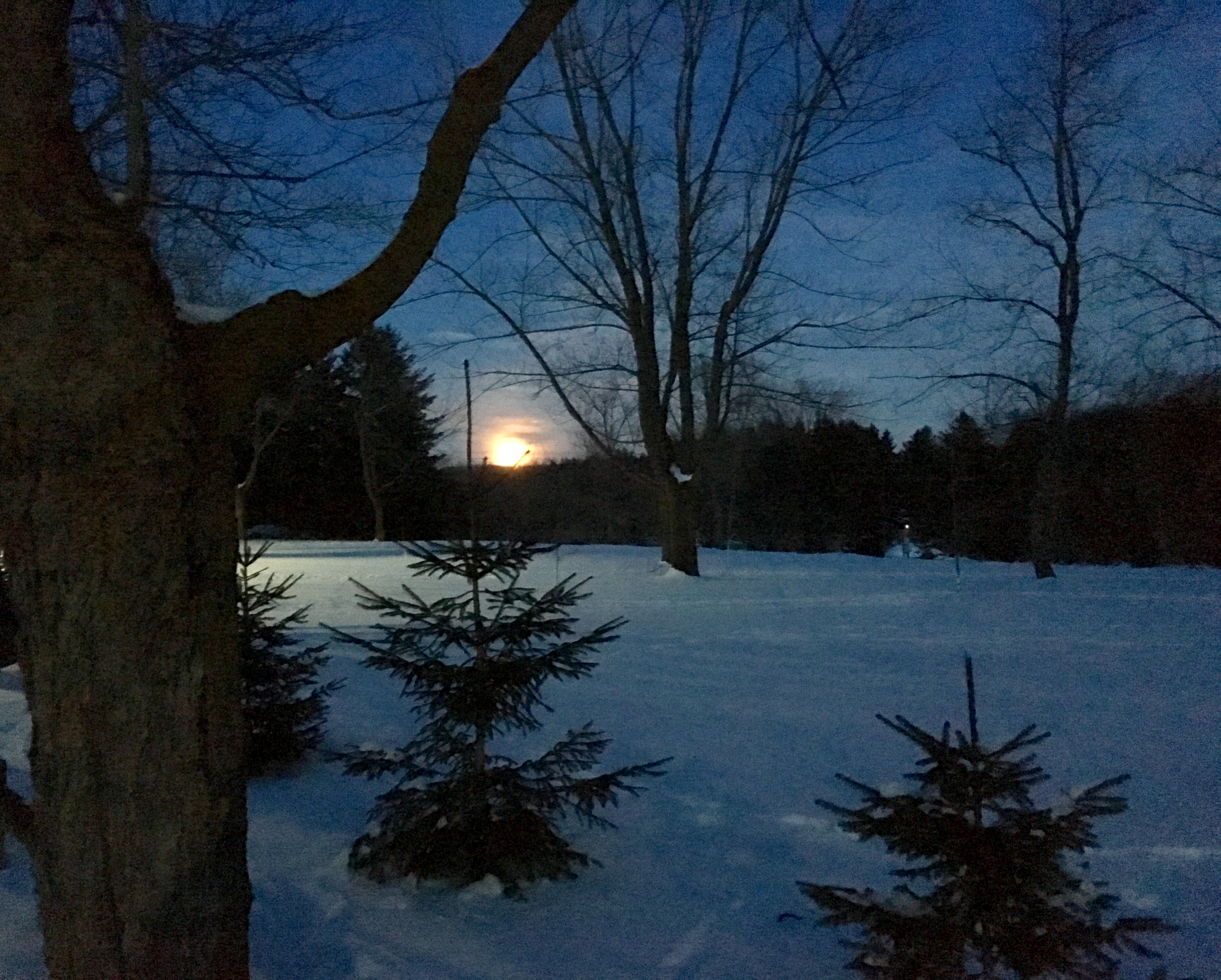 Зима, луна и где-то там за деревьями олени.