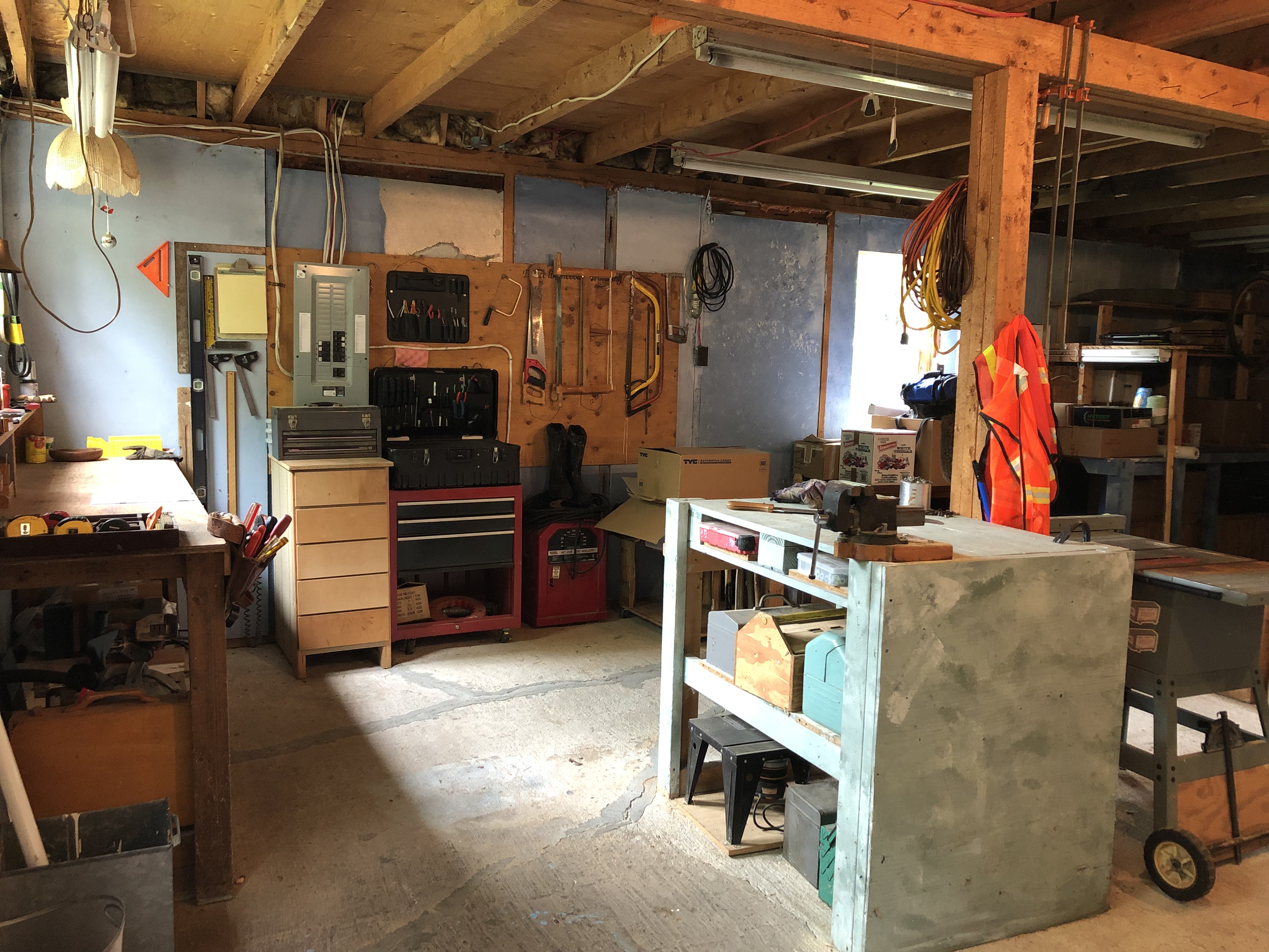 Да, муж очень рукастый. Поэтому вместе с домом приобрели большой гараж - workshop. Какое дерево, не знаю, спрошу потом. Кровать king, составленная из двух tween, большая.