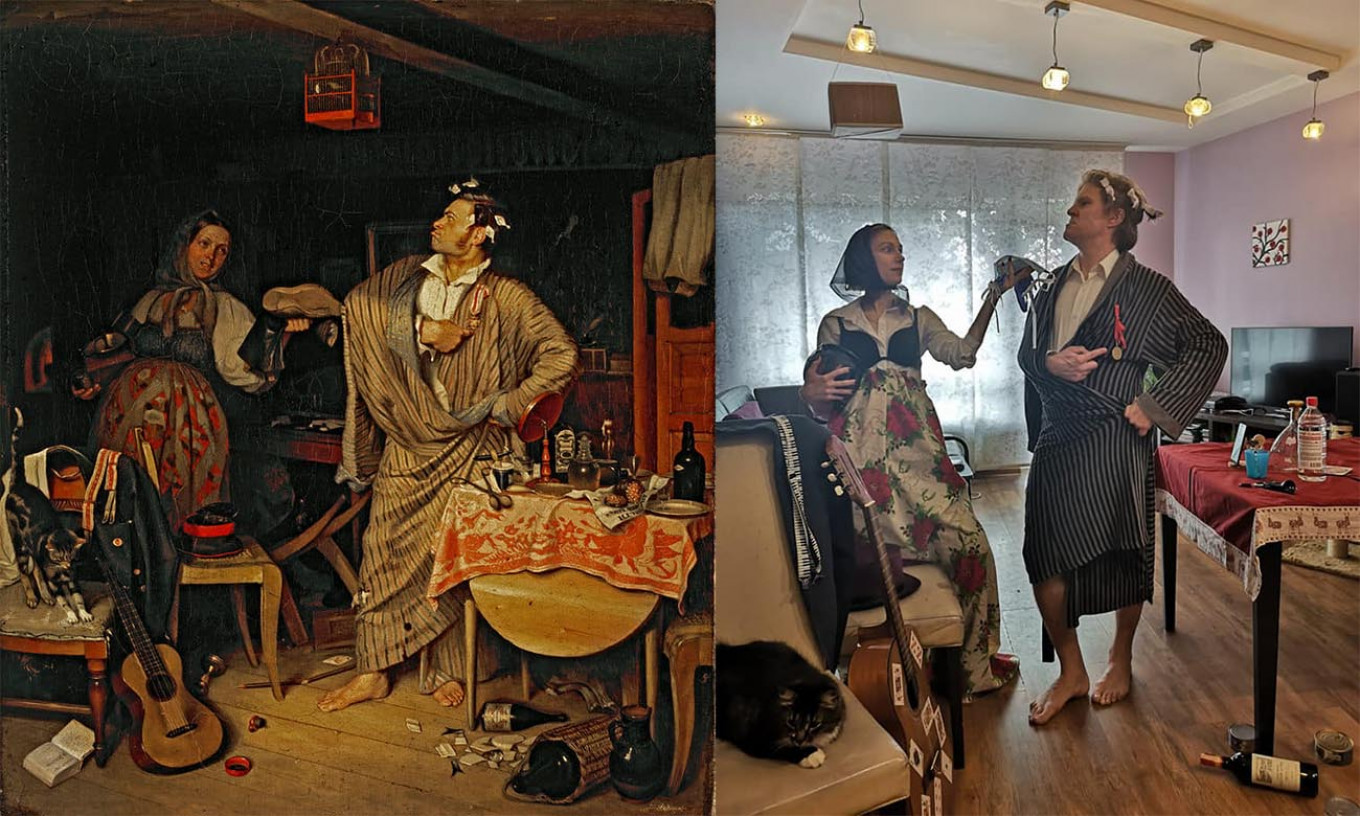 В конце марта российские пользователи соцсетей запустили флешмоб "Изоизоляция". Суть в том, что каждый может попытаться воссоздать известное произведение искусства - картину или скульптуру - из подручных средств. Фото своих творений пользователи выкладывают в группу в "Фейсбуке", в которой на данный момент состоят уже более 300,000 участников. Мы попросили искусствоведа и куратора Третьяковской галереи Кирилла Светлякова выбрать несколько интересных работ пользователей и оценить их с художественной точки зрения.