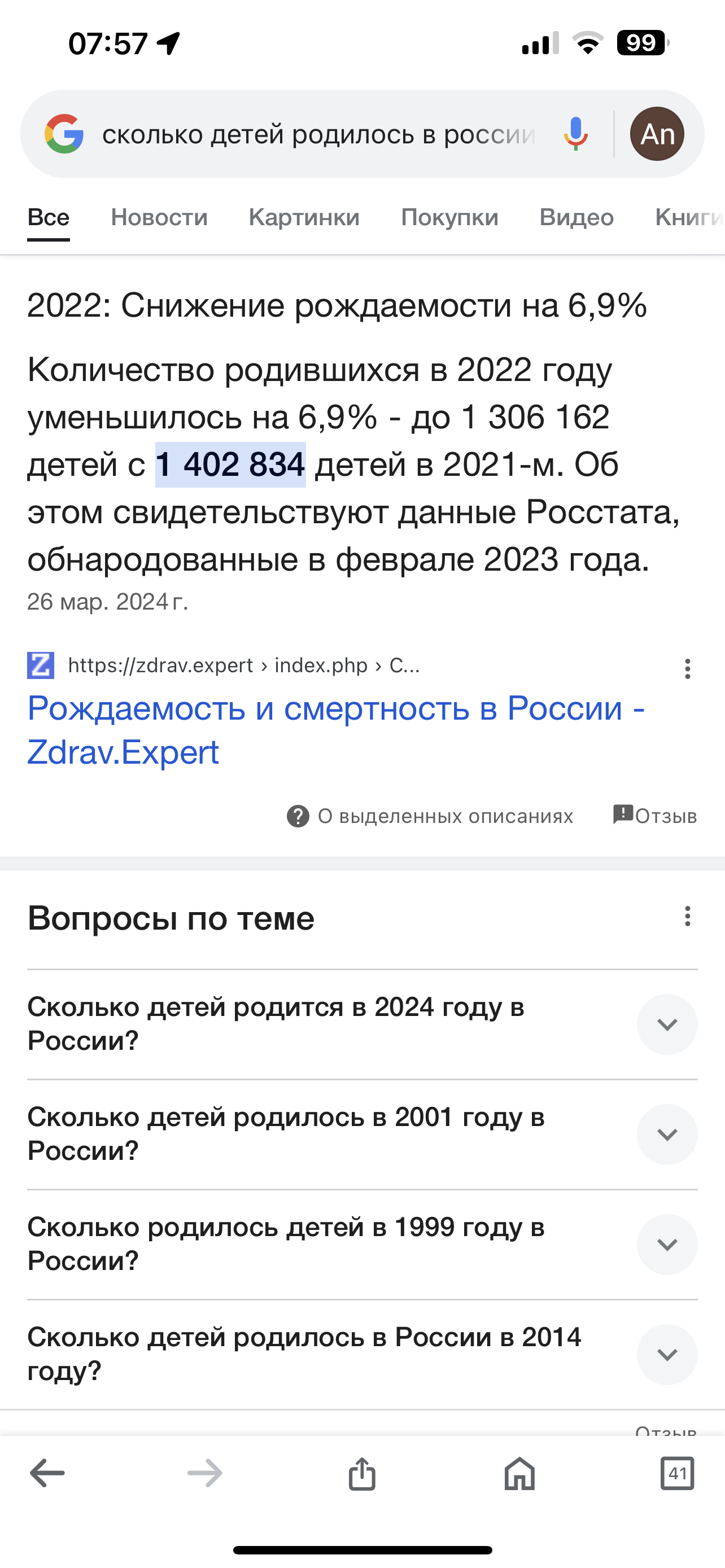 В России демографическая ситуация катастрофическая , Рождаемость 1.2 миллионов. Смертность 2.5 Народ вымирает. Кстати даже и это не стимулирует рождаемость. Была статистика от росстат. 55% семей по прежнему имеют одного ребенка . Рождаемость на женщину 1.3 кажется .[/quote] «По итогам 2023 года суммарный коэффициент рождаемости в России (среднее число детей на одну женщину) составил 1,41. По сравнению с 2022 годом (1,42) показатель незначительно снизился.