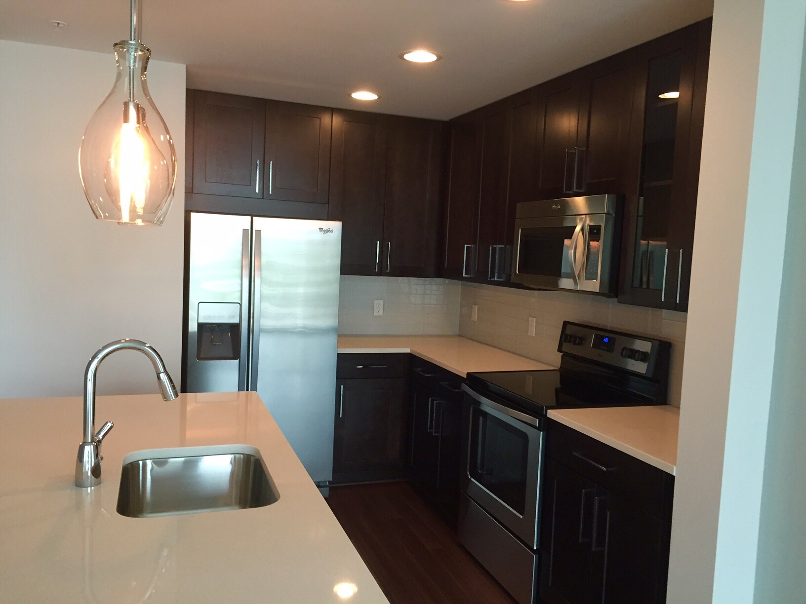 Вот показываю разницу между темной и светлой кухней, мы без сомнения выбрали белую, у нас хоть на кухне низкие потолки, что минус, зато в жилой и в спальнях высокие