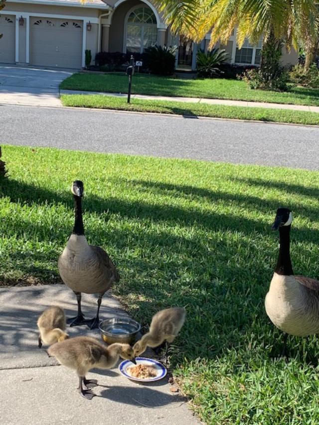 А так интересно, гуси поддаются дрессуре. Вчера Джордж ел с руки у меня. Может, его как-то нa бэк ярд загнать, но мы уже решили никаких петсов- уже немолодые. А, еще он одного моего кота не взлюбил.Только одного.На других не реагирует.Как Вигглса увидит(у него, конечно , мордочка не самая кьютная)  Так несется за ним уже раза 3 видели как в задницу его клюет. Тот через забор аж перелетает от страха, но потом снова идет наблюдеть за гусем.