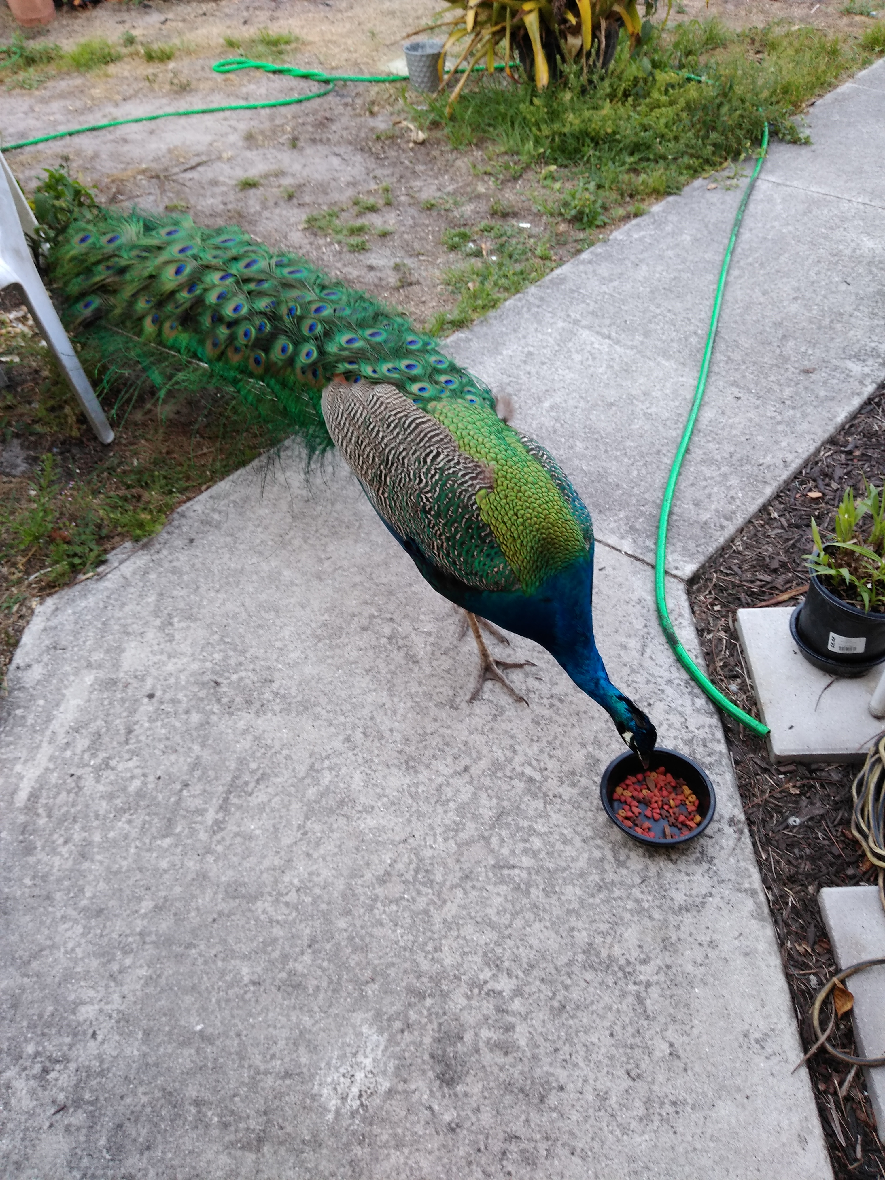 Мамик, а павлин домашний пет? Или прихожий? У нас с этого и началось, с котовьего корма. Бездомный Бобик приходит, и я на всякий с лучай оставляю, вот Джордж и разведал.