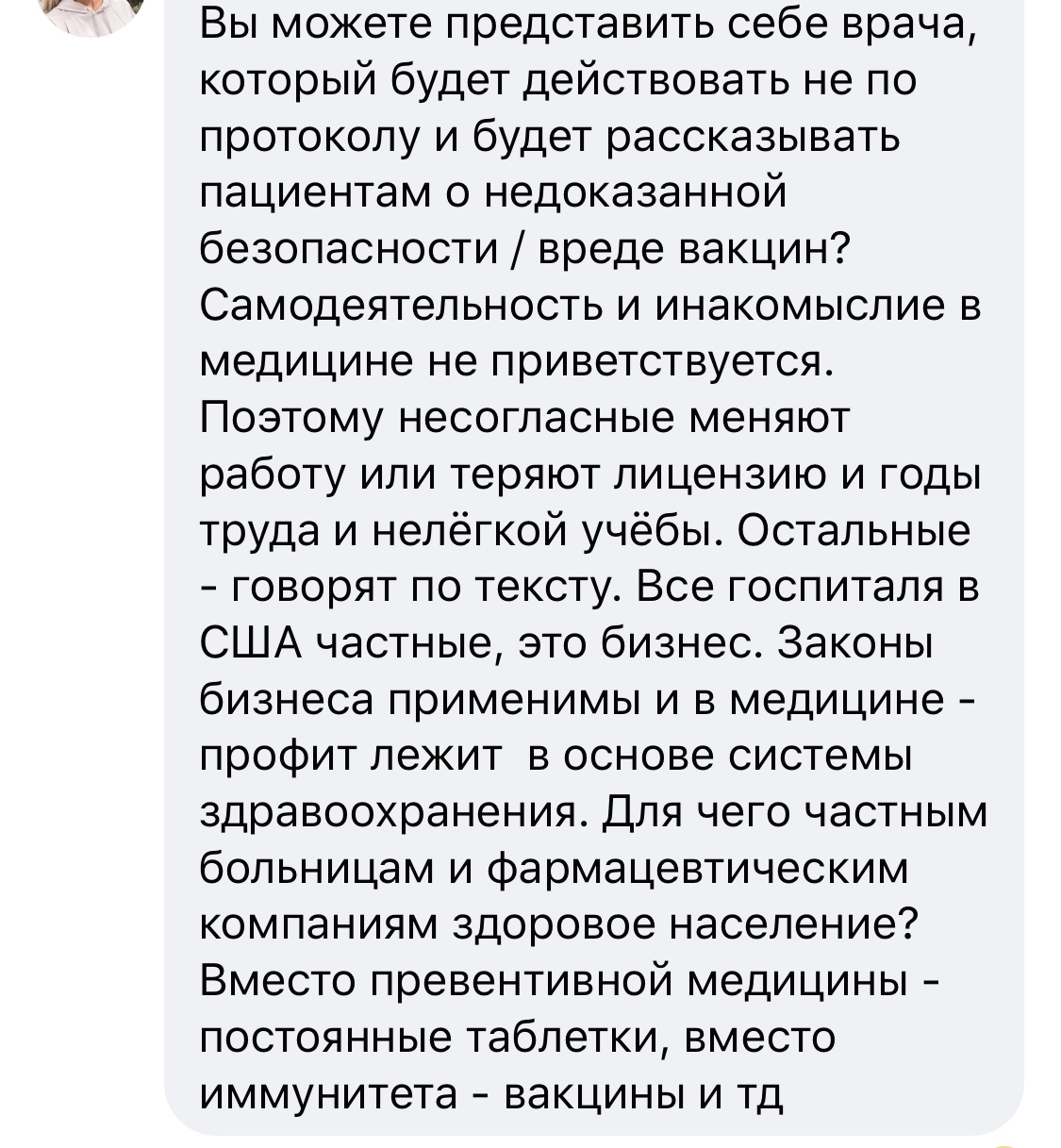 Amalia_Ca писал(а): BusyBee писал(а): Amalia_Ca писал(а): Учительница писал(а): с 19 века много чего случилось с человечностью и с медиками в частности., 2 мировые войны, медицинские опыты над людьми, евгеника, лечение лоботомией, принудительная стерилизация, медицинские опыты над людьми продолжаются и по сей день и час +1  И вы абсолютно правы... Понравился комментарий И что? Некоторые действительно умом тронулись. Даже не знаю, по причине пандемии или ещё чего.... народ, вы переехали в капиталистическую страну!!! Где всегда все продавалось и покупалось, умы, жизни, здоровье....многие и приехали сюда, потому что купили ваш УМ!!! Советский Союз не оценил достойно ваш ум, вы в Америку приперлись. Столько счастья было. Теперь и здесь плохо? Так что вы хотите от этой страны? Чтобы в ней сочетались капитализм, социализм и коммунизм в придачу? Ну этого никогда не будет.