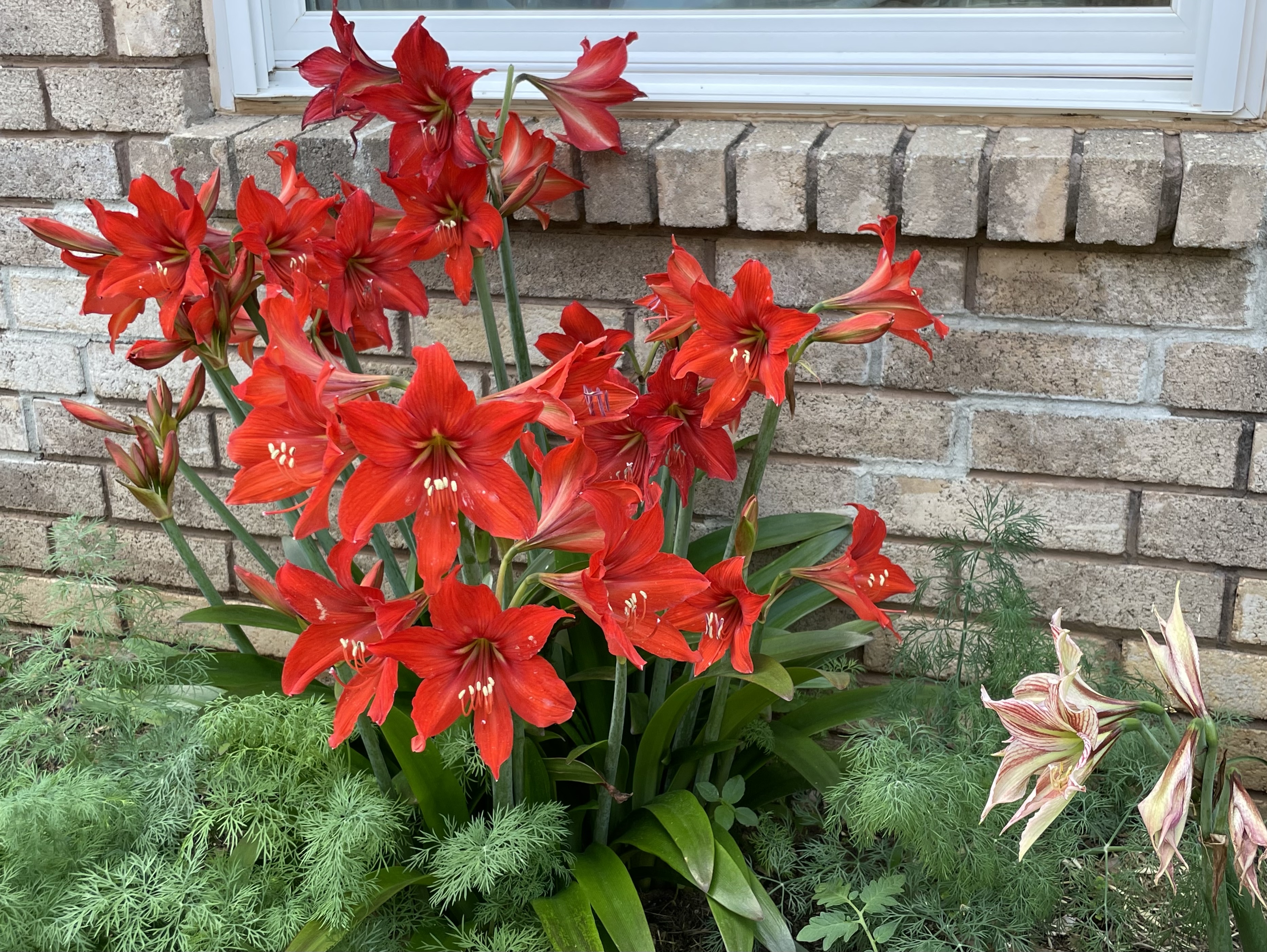 Чтобы ты сделала? Бейль, я чет совсем про них ничгео не знаю...они какие-то странные на вид  , куча какая-то (я про свой).Чем там Георгий вечно восторгается - мне не понятно. Но вкусы у каждого свои, да. Мне кажется. мой тоже как-то разваливался одно время, как будто что-то с ним было не тогось, сейчас собрался, плотный стоит. Поливаю без затей - как все. Но обычно сухой он, не залит. Я бы отсадила  Хотя. говоришь, они почвопокровники? тоись должен в ширину разрастаться? Тогда че...пусть растут, где растут...Не помогу я тебе с ними...  Фотка амариллисы пораспускались (там еще куча стрелок лезет,но первые уже начали отцветать, не знаю,лучше будет завтра,или хуже  так что вот… распустились… И зимостойкие мои тоже цветут