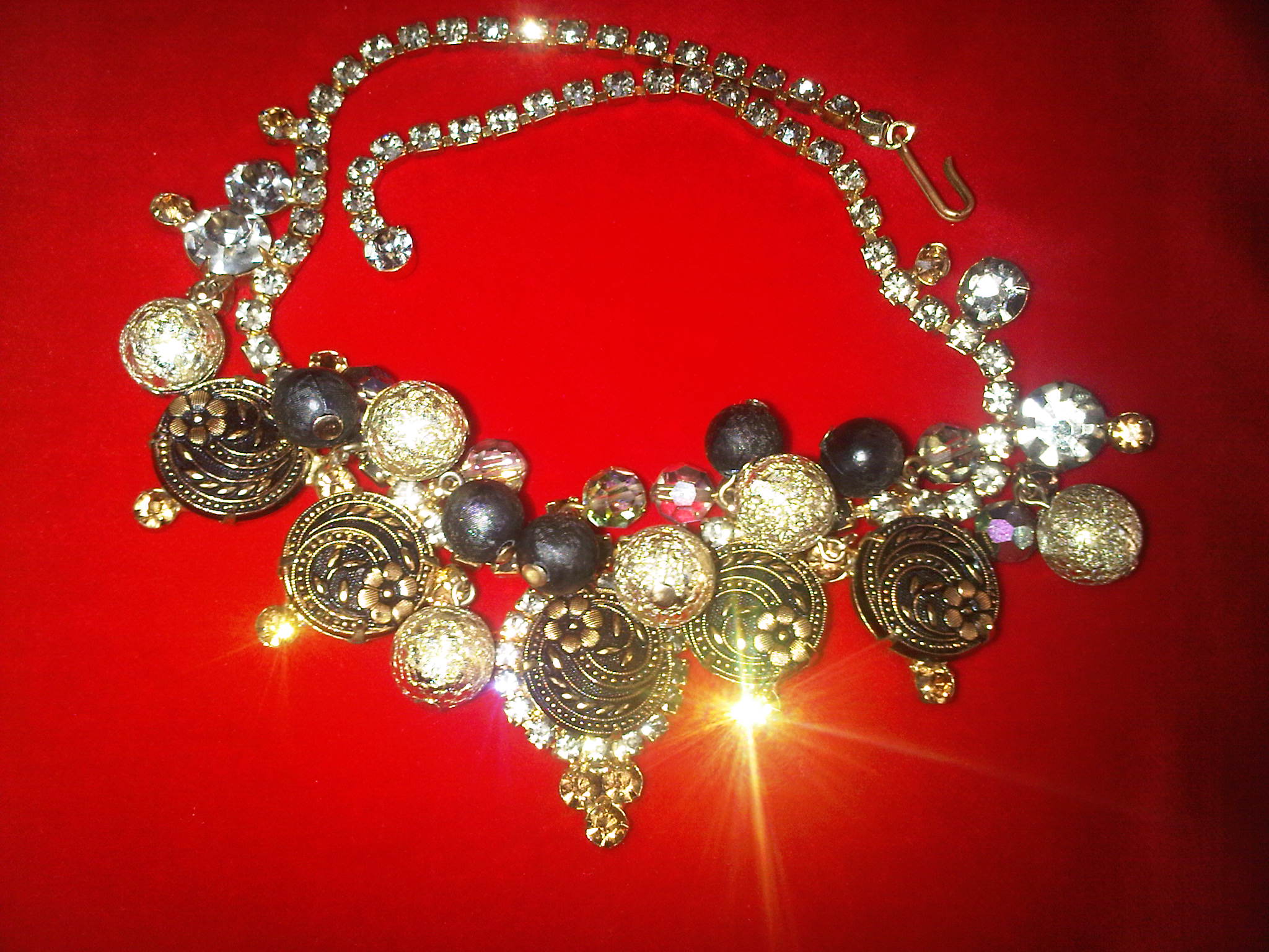 Вот мое колье джулиана. я его уже раньше показывала. кгода я его покупала, то в антик сторе это был полный сет - еще клипсы и браслет. cтоило все копейки. но я тогда только приехала в штаты и вообще не знала, что это. муж говорил взять весь сет, но я решила, что клипсы будут давить уши, а браслет будет цеплять и рвать одежду. Только колье купила. сейчас локти кусаю.