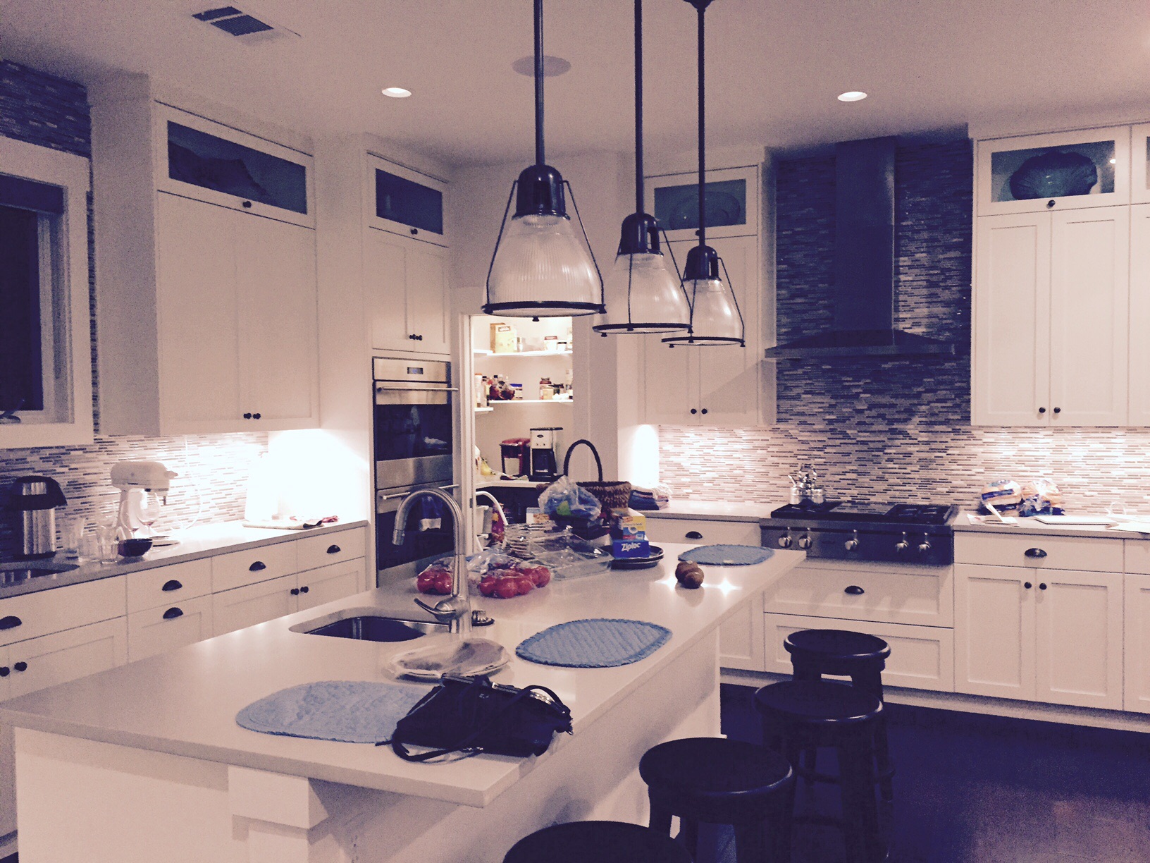 M&M's Mom писал(а): Перекрасили? Первый вариант темнее не только столько из-за одного гарнитура, но и из-за сочетания его и темных полов. Это сужает пространство, да. Нет, просто было два варианта изначально... Я для интереса сейчас покажу кухню наших друзей в ТХ , которые, как написали, построили маленький домик в центре города. Они его строили по принципу не нарушения архитектуры общего места, где много старых домов. Я не была впечатлена поэтому видом дома изНАружи, но когда вошла во внутрь, то ахнула. вот их кухня, где видна та же плитка на стене, как у Гудлиных клиентов, но пол у них из натур дерева, не ламинат...там дверца открытая в pantry room
