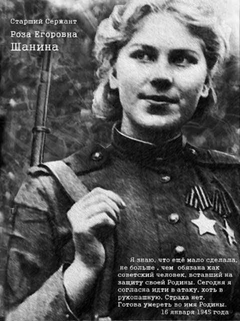 Война началась, когда будущей девушке-снайперу было всего 17 лет, она сразу явилась в военкомат, чтобы отправиться на передовую в качестве добровольца. Однако девушку на фронт не взяли ввиду ее возраста. После настойчивых требований, слез и уговоров Роза была принята в отряд Всеобуча, а затем прошла подготовку в снайперской школе в Подольске. О характере Шаниной можно судить по отзывам ее архангельской подруги Марии Макаровой. Макарова вспоминает Розу как добрую и отзывчивую девушку, отдавшую в тяжелые голодные годы ей продукты из сострадания. Молодой воспитатель рвалась на войну, все действия были направлены лишь на достижение поставленной цели. Волевой характер Шаниной позволил добиться уважения и на фронте. Из дневника и писем, опубликованного другом Розы корреспондентом Молчановым, можно понять, как сильно горела желанием воевать эта юная и красивая северянка. Сражение с немцами она называла не иначе как месть за павших и замученных соотечественников. 2 апреля 1944 года Роза, достигшая возраста двадцати лет, прибыла в стрелковую 184- ую дивизию. Командование определило Шанину в женский снайперский взвод, задачи которого сводились к поиску и уничтожению отдельных солдат неприятеля, а также его снайперов. Впервые стрелять по живой мишени снайперу Розе пришлось уже 5 апреля 1944 года, рука девушки не дрогнула, и счет мести за павших от руки оккупантов был открыт. Дивизия тогда стояла юго-восточнее Витебска.