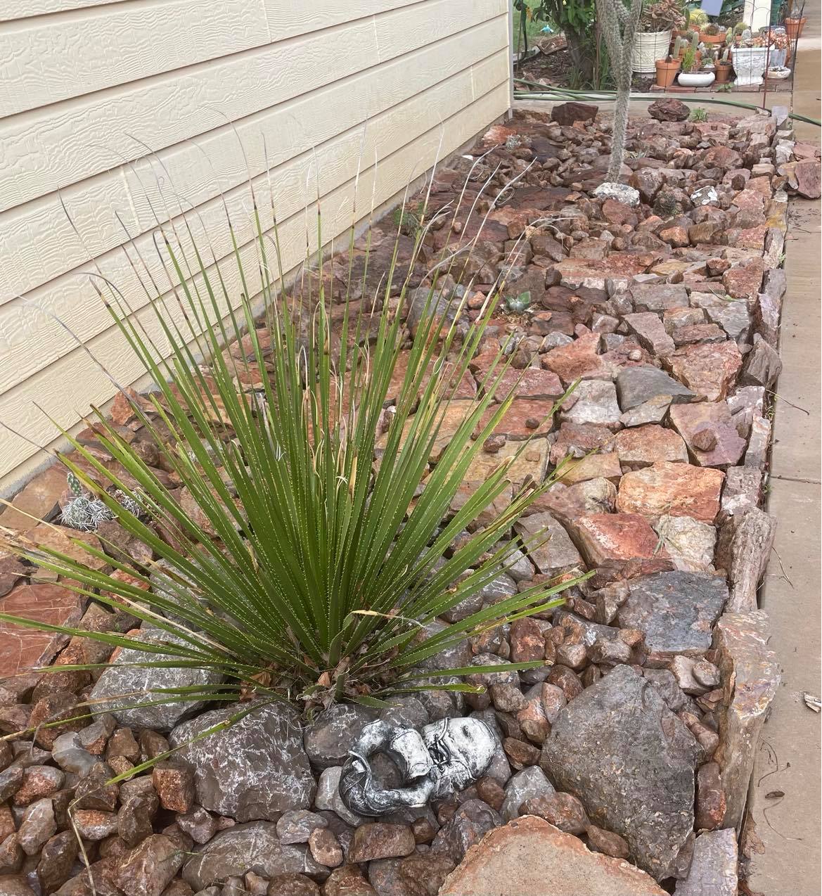 дык да, в укропе) осенью высыпала всю банку залежалых семян туда, просто чтоб не в мусор) типа в виде мульчи  и вот вам результат - косой коси. Замораживаю. надо уменьшать плантацию, куда его столько. Да и место занимает помидорное и огуречное. Но выглядит задорно, пушисто и зелено На днях дозасыпала кактусовую клумбу булыжниками. Ну она планировалась как кактусовая, но небольшие какты не очнеь удачно там смотрятся - не видно их среди камней. оставила агавы да юкки, еще чола там торчит тоже высокий, да пара опунций небольших. Агавы вырастут - будет красиво (только когда они там вырастут , малышки совсем)