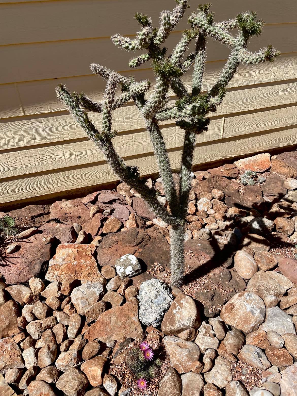 Сыпасыба, други Бейлик, мне вообще нравятся суко-клумбы, но сама все никак не могла ничего путного организовать. Ну вот сейчас как-то что-то проявляется. А вот сегодня расцвел Аризонский какт (Адолоча, привет тебе  ), не совсем мелкий, и цветки вполне себе яркие - вон видно внизу, что почти его и не видно. Но пусть себе растет там, уже несколько лет , зимует - цветет, пусть там и будет... Монализ, именно эти, которые ты выбрала - там нечем еще делиться, розовые впервые расцвели, а сине-желтый (как бы реблумный, как на этикетке было) - он тоже никак не разрастется, хотя уж несколько лет. Вот желтые - те прут как из пушки, выдираю уже ведрами, а то все заполонят. белых тоже много.
