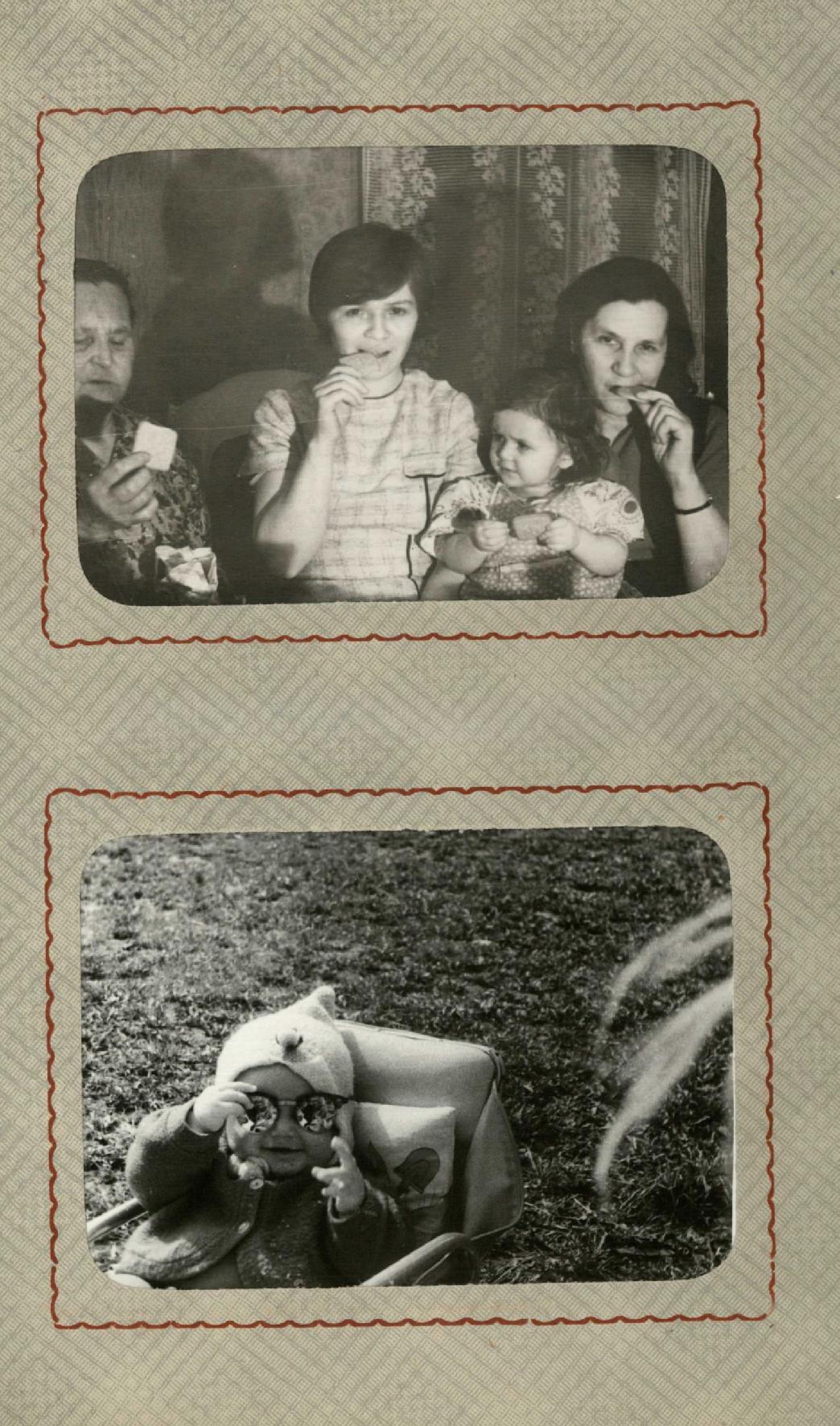 а вот еще смешную фоту нашла как все пьют чай вприкуску с печеньем. Слева бабушка, мама, я и квартирная хозяйка, ставшая лучшим другом на все времена. Она из семьи дореволюционных ювелиров в Питере И Очки какие у меня, наверное, модные