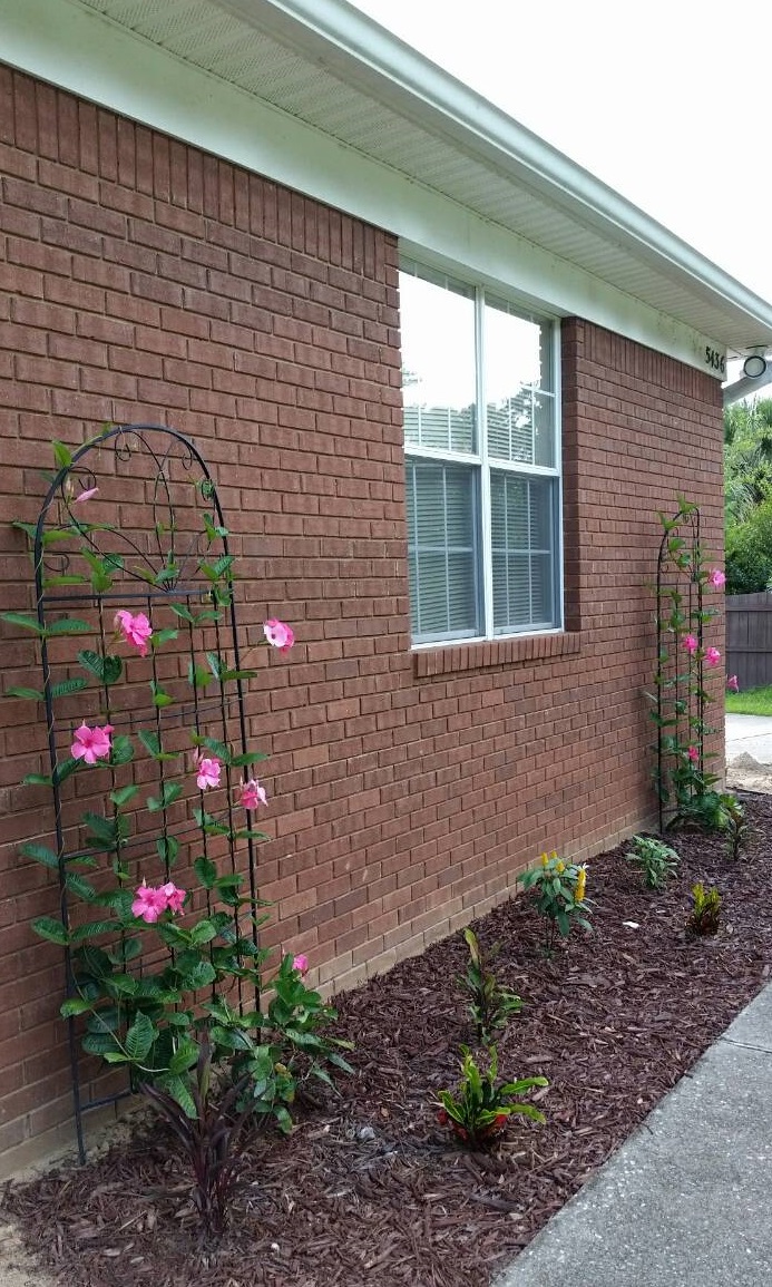 Baylee писал(а): Наш фронт-ярд по-тихоньку начинает вырисовываться! Конечно, работы еще вагон и маленькая тележка, но хоть малая часть уже радует Очень я довольна этой гиганской мандевиллой- за пару месяцев вымахала до нужной высоты... уже начала её прищипывать. Очень художественно красиво получилось.  Такая живописная мандевилла. (Я дальше плетистых роз на треллисах в сознании продвинутся не могу, застряла в розах совсем. Ну модет еще клематисы к розам добавить. А вот оказывается и другие растения живописные существуют  )