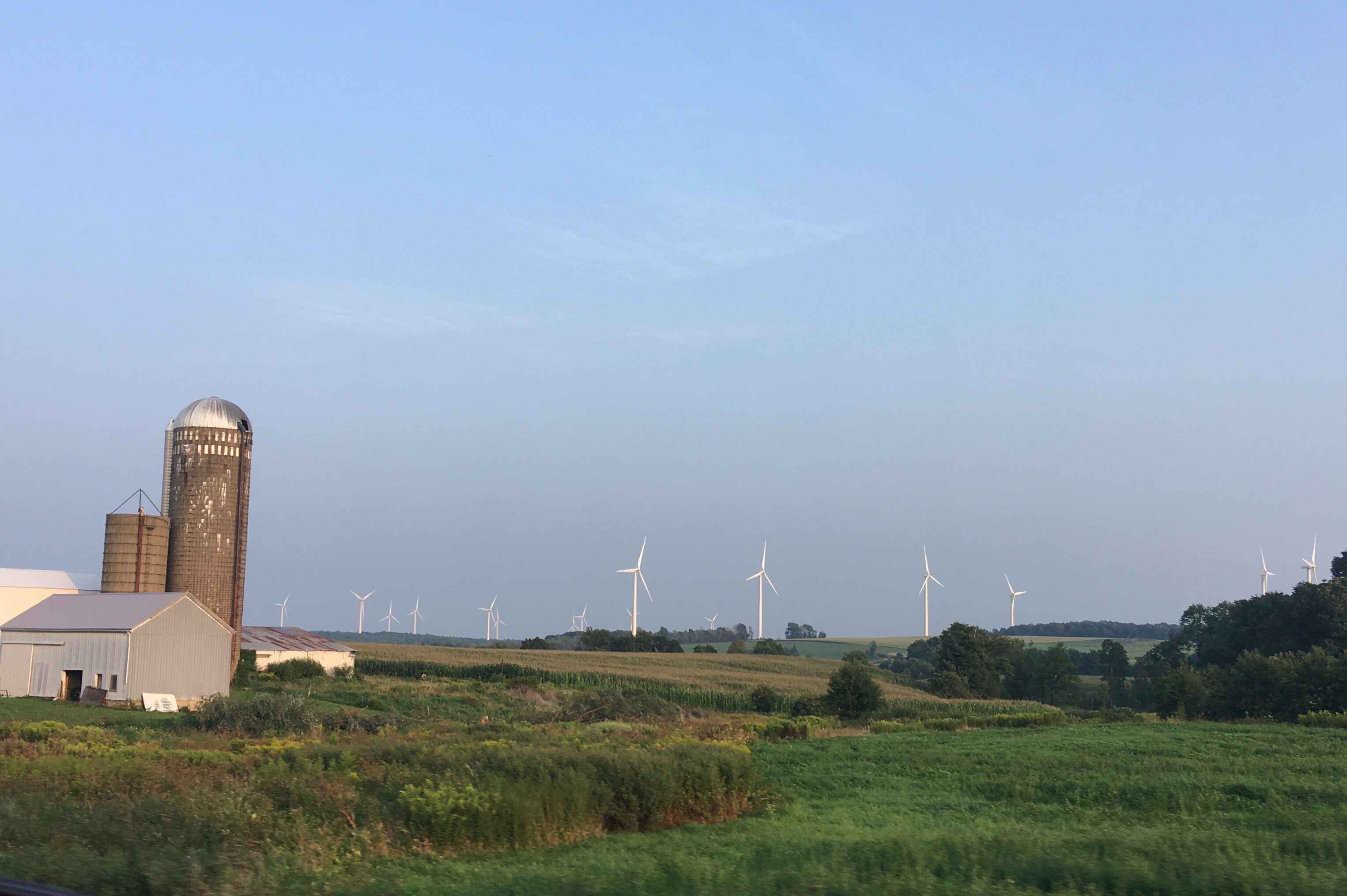 Не знала, что в штате НЙ есть ветряные мельницы. Фото не отражает сюрреализма - они неожиданно выплывают из-за пасторальных холмов. Очень странное и завораживающее зрелище.