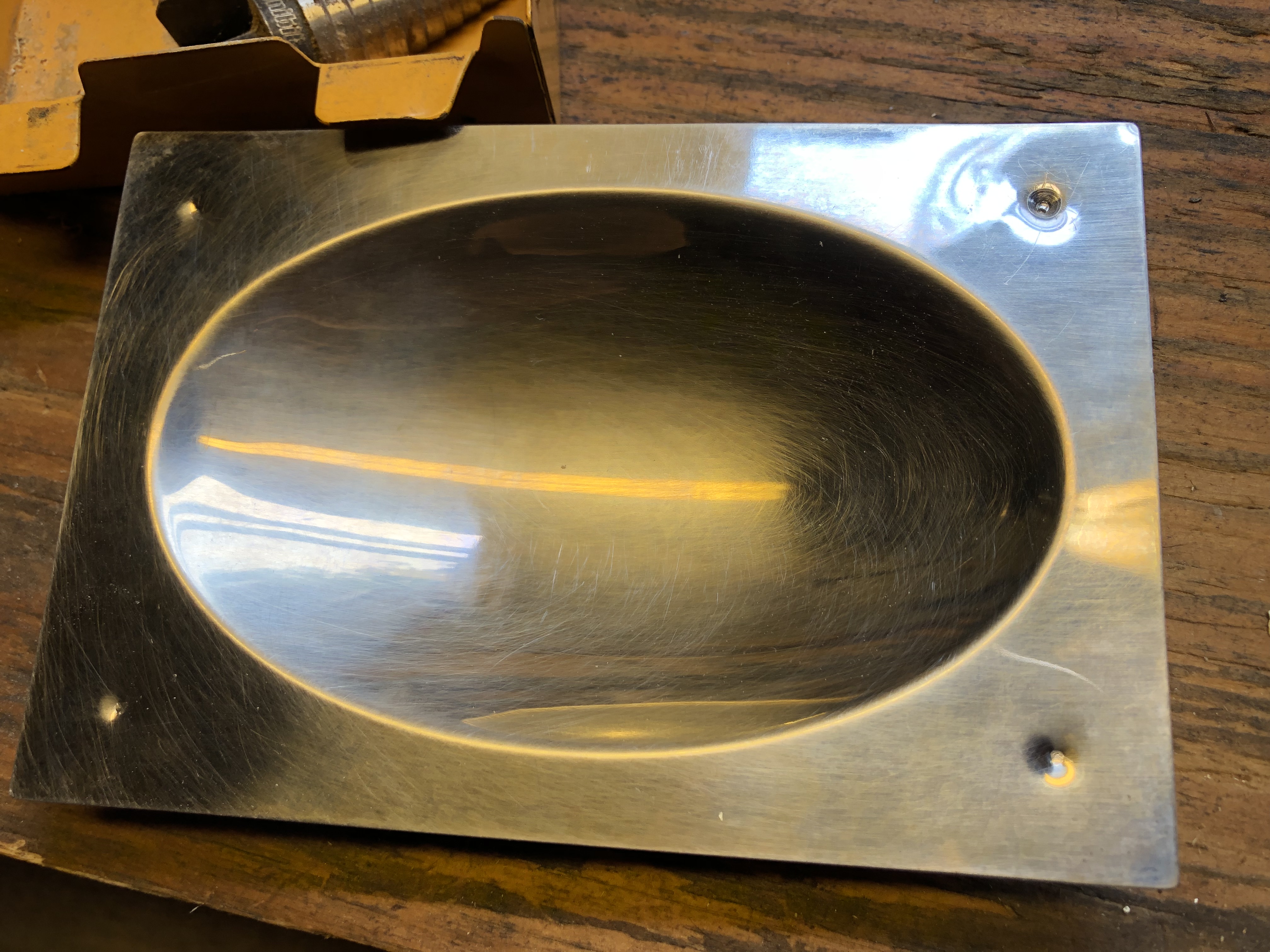 Незабудка, очень понравился цементный вазон  , люблю такой стиль, тоже хочу. Плитка тоже красивая, особенно вторая. Олли, отличные идеи для лестницы! Может мне в подвал такую организовать... А меня дожливый день сегодня загнал в гараж и я наконец-то отремонтировала мыльницу.  Она отклеилась, распалась на две части - деревянную и железную. Я решила не клеить, а просверлить и соединить шурупами. Вот такой индустриальный дизайн получился. Думаю, в будущем будет сочетаться со slide-door.