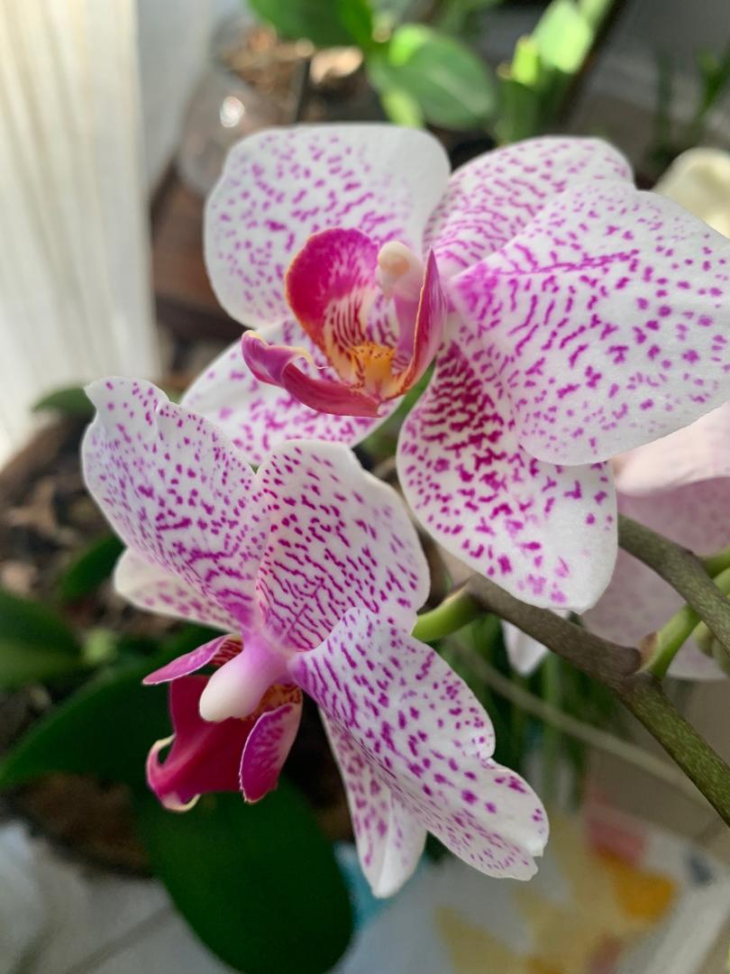 Спасибо, девочки!!!Правда, хорошо, когда зелененькое с цветочками дома. Major -а birds of paradise- она дома у тебя? А ящерки...у нас котики их домой нам на завтраk, обед и ужин таскают.  Не успеваю ловить и на волю выпускать... Бейли, да орха обычная, я же не oрховод.Вот подарили в прошлом году, на фотке как-то шикарнее выглядит, а на деле помельче цветки. Мне нравится все, что цветет, в принципе. Насчет выживших в морозах....У меня корзинка с петуньями на дереве висела,и крючок вросся в ветку,.Решила заняться уже весной. Ну и что? Петунья все морозы выжила!!!Живее всех живых! Подкoромлю, посмотрю. как будет второй сезон.Вот уж никогда бы не подумала. Зеленушку тоже ничем не пробрать! Я арагулу посадила, она просто бушует.Горькая ,я ее не могу есть. Капуста растет, силантро , лук и жиденько укроп.