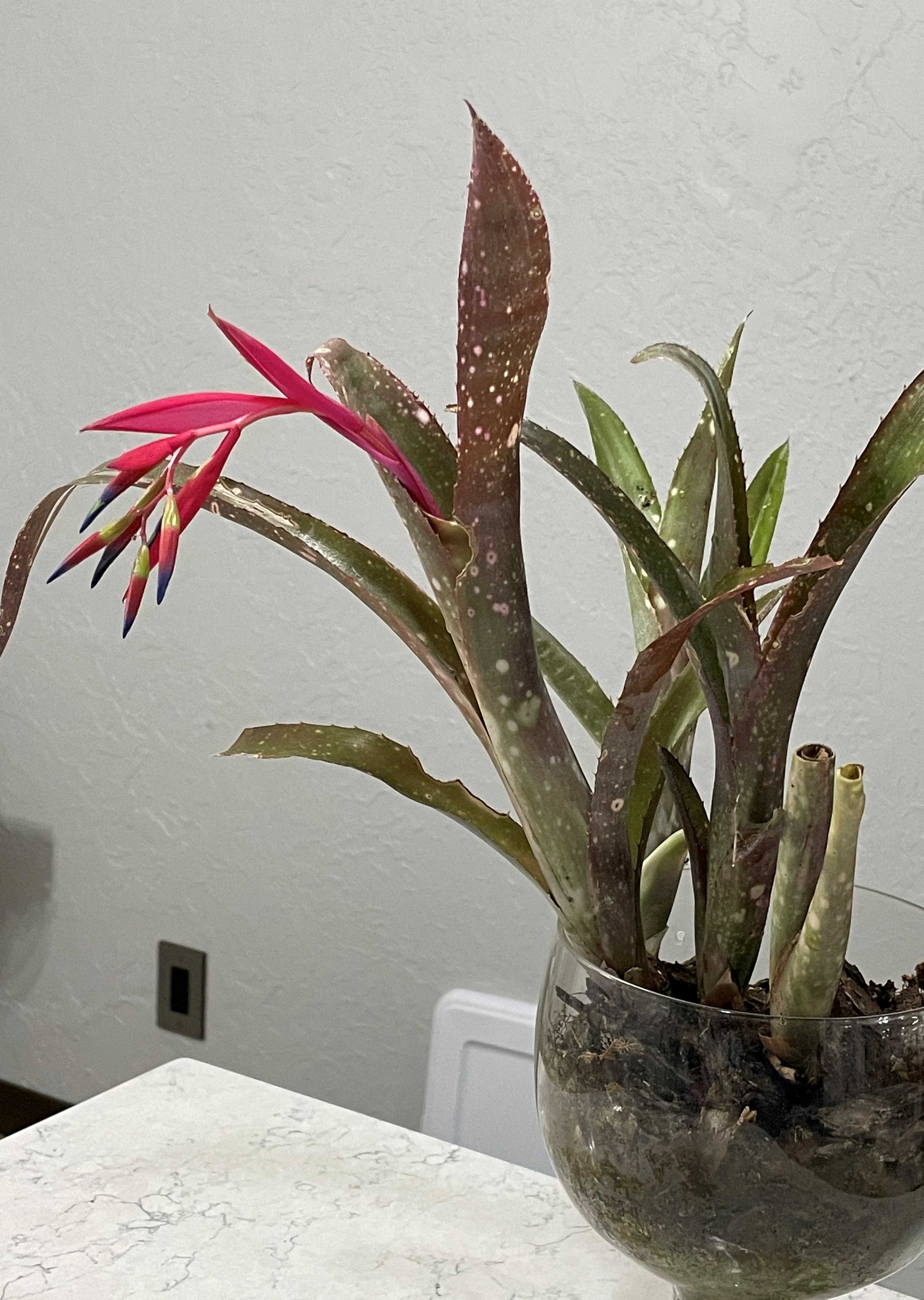 OklaXoma писал(а): У меня зацвела какая-то бромелиада. Красота! Мамик, это ведь от тебя она? Напомни название, плиз! Воткнула ее в вазу, как орхидею, вроде нормально ей там. Потрепанная, под град попала... Бромелия моя. Название не помню, она давно у меня, Но можно найти в инете. Тоже держу вместе с орхами, под навесом от полного солнца. Но и на солнце они нормально. Очень красиво, когда разрастется и зацветет. Жаль, цветет недолго. Эта и вторая, которую розовую посылала тебе, - мои самые любимые.