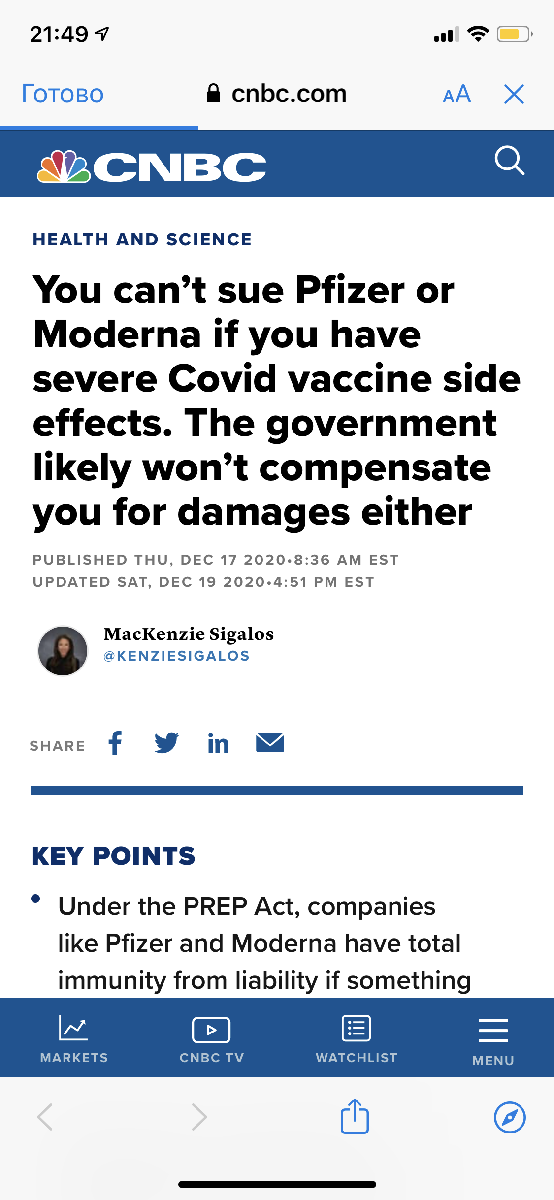 You can’t sue Pfizer or Moderna if you have severe Covid vaccine side effects. The government likely won’t compensate you for damages either PUBLISHED THU, DEC 17 20208:36 AM ESTUPDATED SAT, DEC 19 20204:51 PM EST