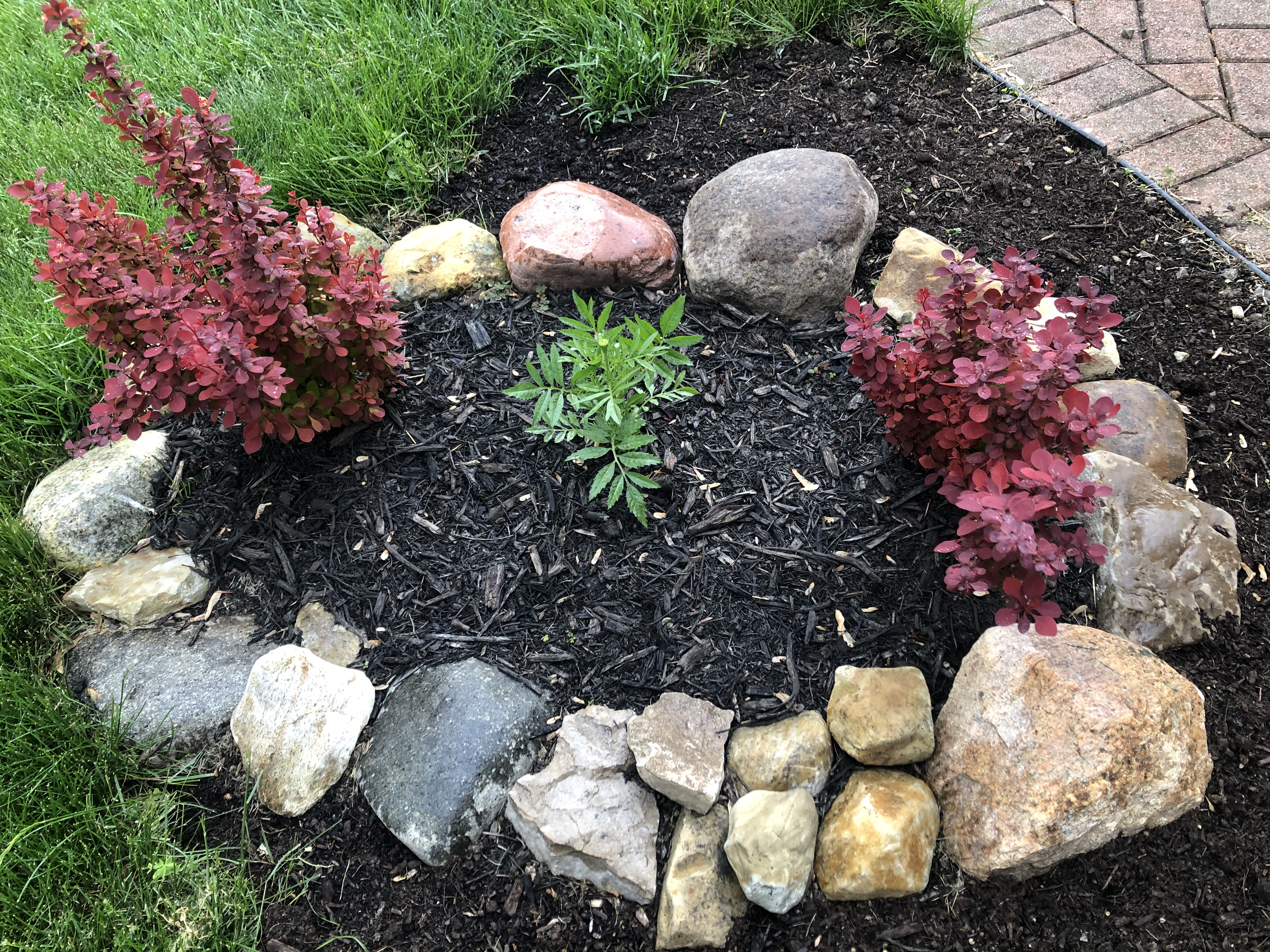 Nevera, да, японский барбарис, с колючками. Года нет ещё. Купила на сэйле, полу-живые «по рублю». Похоже, живучие:) и очень быстро растут. Не, ну что Вы, какой там в парках да озёрах - government property! Я все с разрешения хозяина: по 2 камушку в год:) Да, очень дорого большие. Сегодня впервые увидела красивые камни в Home Depot с ладошку. А что-то не подумала в нерсери посмотреть.