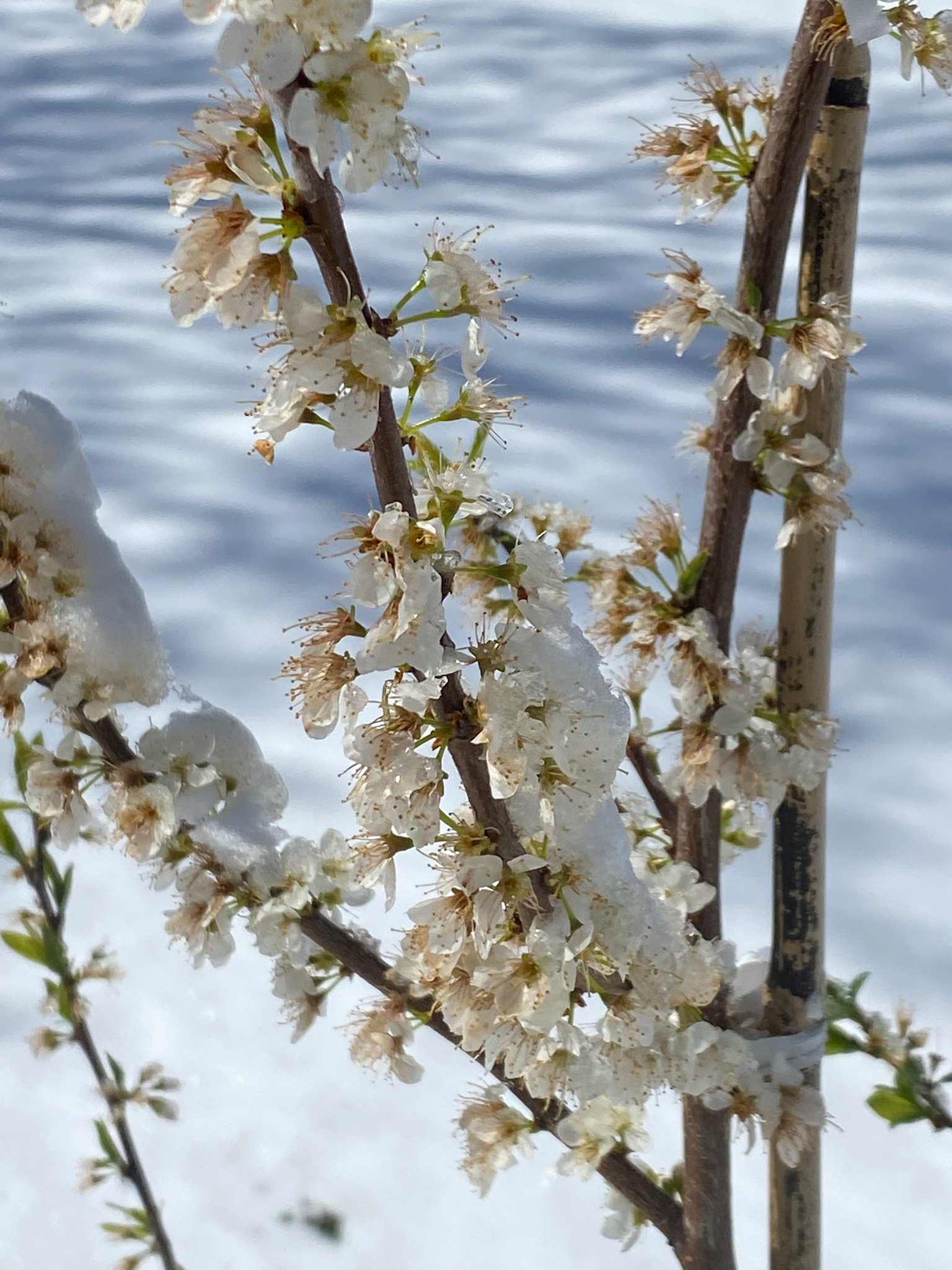 Smoky Mountains писал(а): А у нас в субботу ночью ожидается 14Ф! а y меня слива, персики, азиатские груши, черника и войлочная вишня цветут, горох и редиска взошли  Моя вишенка тоже цветет...не сильно еще, но начинает. Больше ничего не цветет и, честно говоря, почти все спит, так что этот заморозок особо урона не нанесет. Про войлочную вишню - она всегда же цветет рано, у нас в феврале даже (не в этом году). И как-то обычно увиливает от заморозков, но помню, что была вся в цвету (а это какая красота же!), и жахнуло. да, все цветки замерзли, но! она зацвела опять, позже - какие-то запасные-спящие почки проснулись. За абрикосами-персиками такой стойкости не замечалось. Но они и цветут у нас позже.